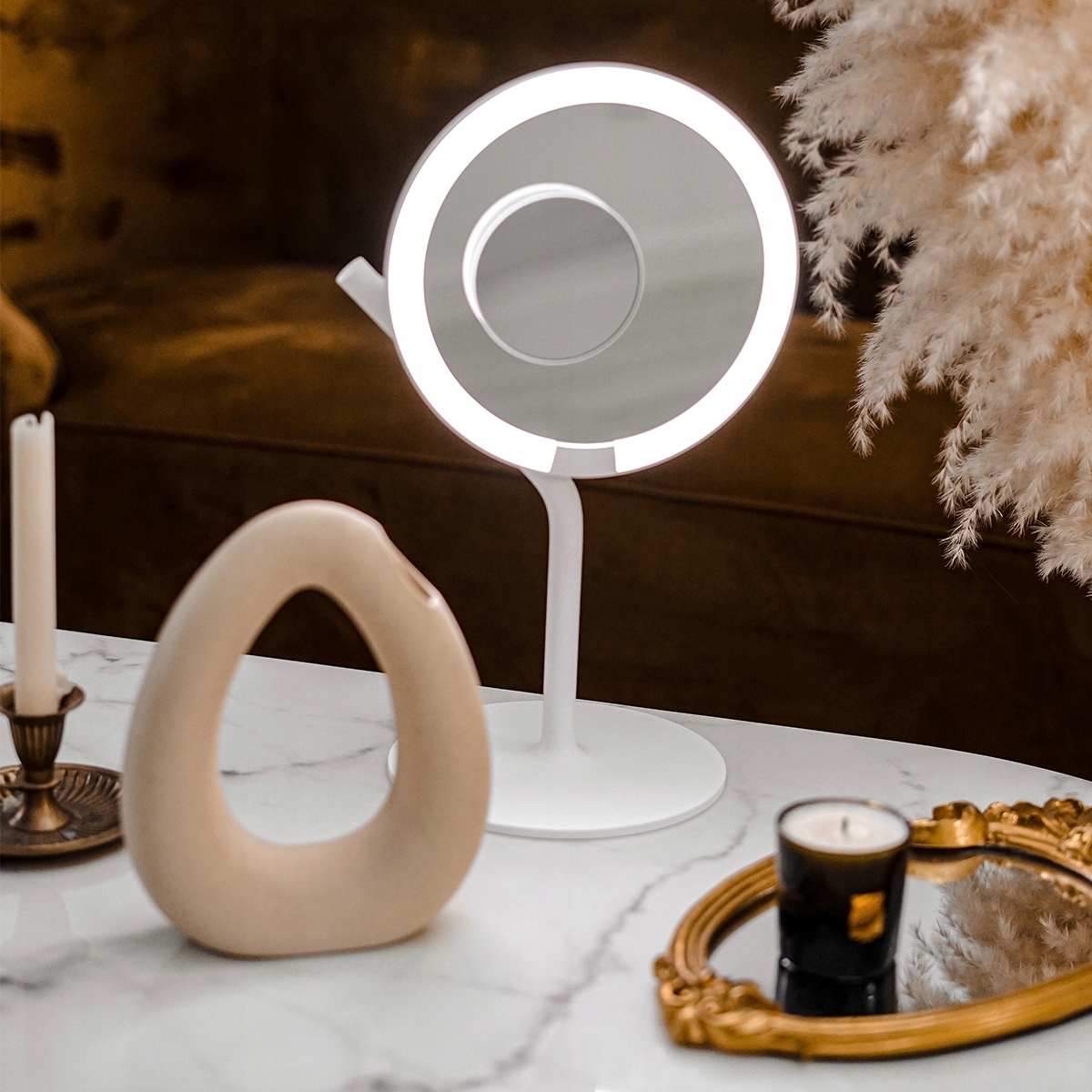Дзеркало для макіяжу з LED підсвічуванням AMIRO біле