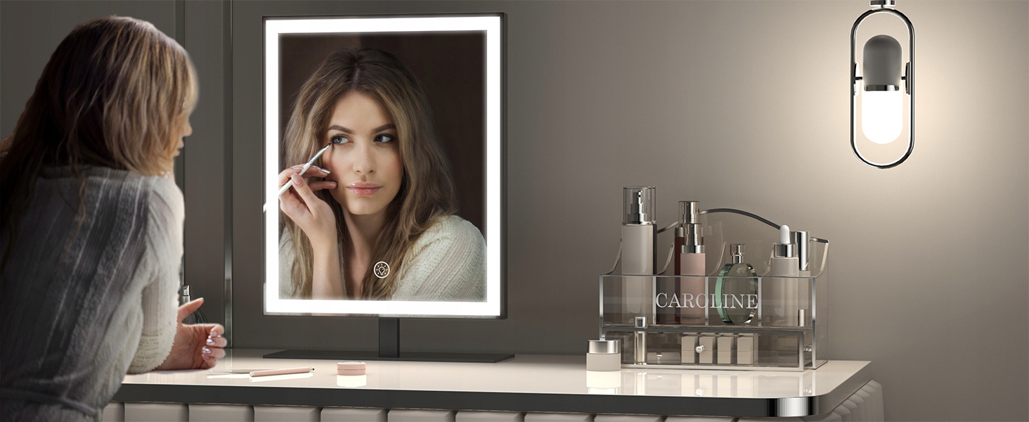 Світлодіодне дзеркало для макіяжу дозволяє регулювати 3 кольори (теплий/натуральний/холодний) і затемнення (10%- 100% ) одним дотиком, забезпечуючи ідеальне освітлення для вашого макіяжу, допомагаючи вам досягти ідеального професійного вигляду для будь-якого випадку.