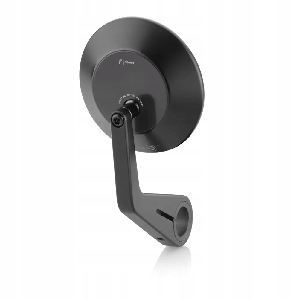 Rizoma Eccentrico BS145B — це високоякісне омологоване універсальне мотоциклетне дзеркало, яке встановлено на кінці керма, виготовлене з алюмінію, обробленого на верстаті з ЧПК.