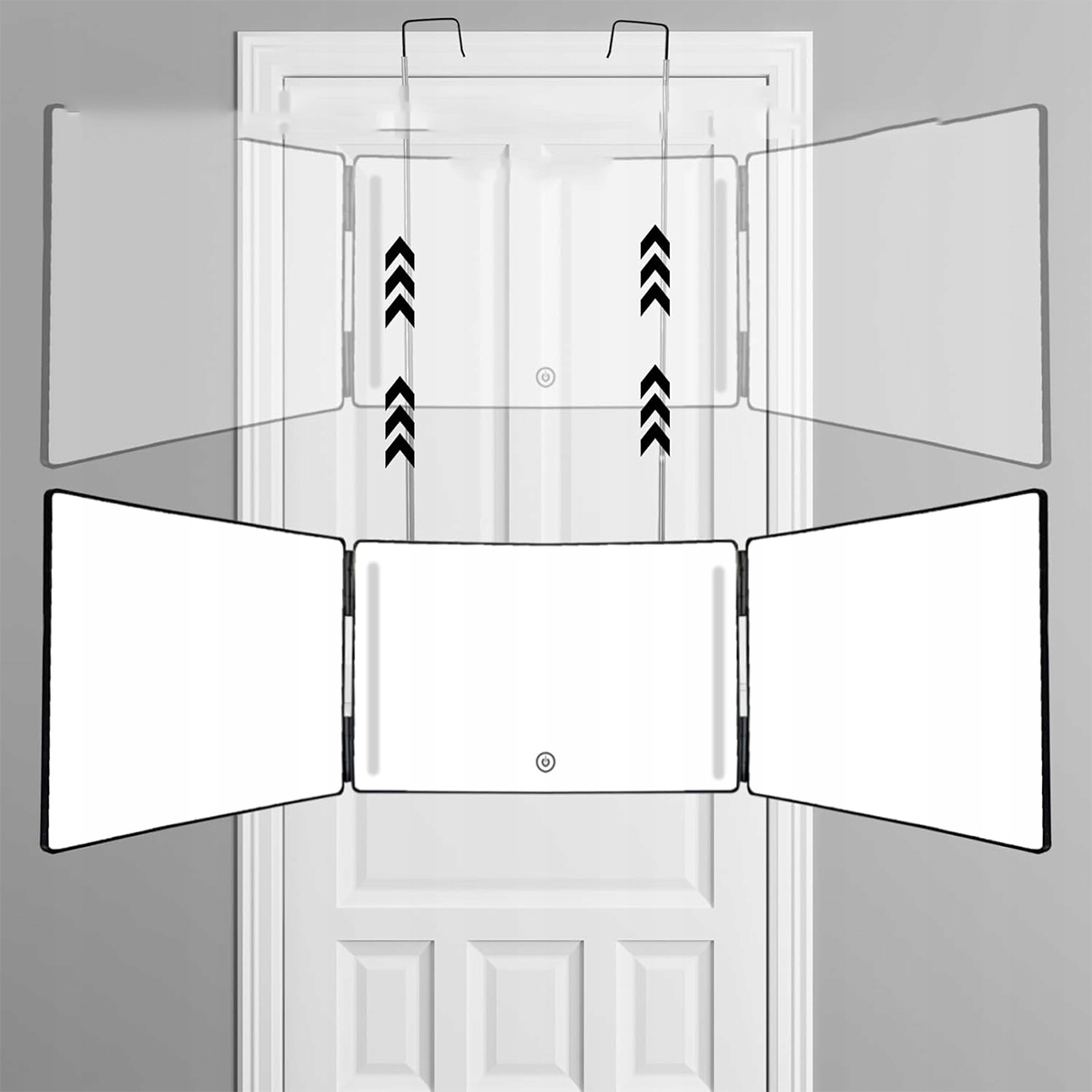 Дзеркало 360 градусів - Складне дзеркало, трьома частинкове дзеркальне набір, самостійне волосся, дзеркало для макіяжу з регулюванням висоти, дзеркало для гоління, дзеркало для макіяжу, дзеркало для гоління, дзеркало перукаря - з світлодіодним 1>