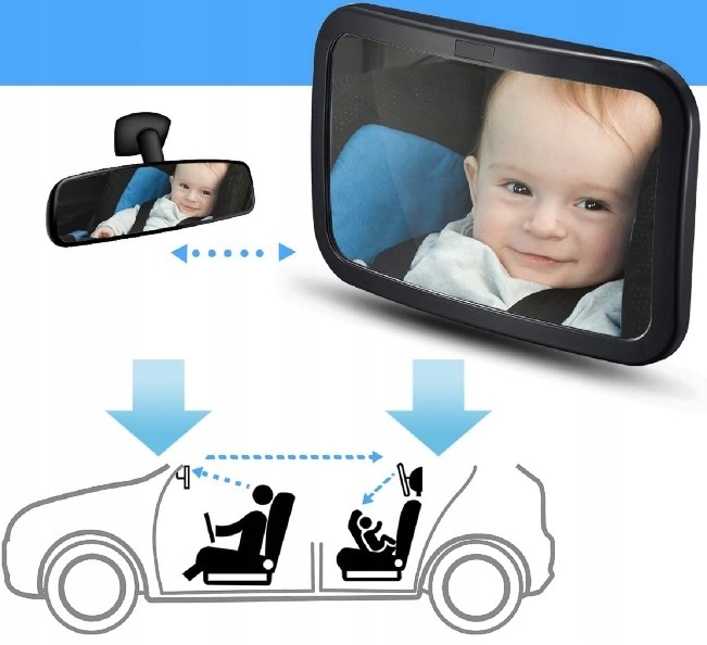 Дзеркало призначене для спостереження за дитиною в сидінні проти руху. Їх слід розташувати на підголівнику біля сидіння, на якому стоїть автокрісло, тоді ви зможете спостерігати за дитиною в дзеркало заднього виду. Дзеркало опукле, що забезпечує широкий кут огляду. Використання дзеркала дозволяє водієві зосередитися на водінні, спостерігаючи за дитиною, не повертаючи її голови.