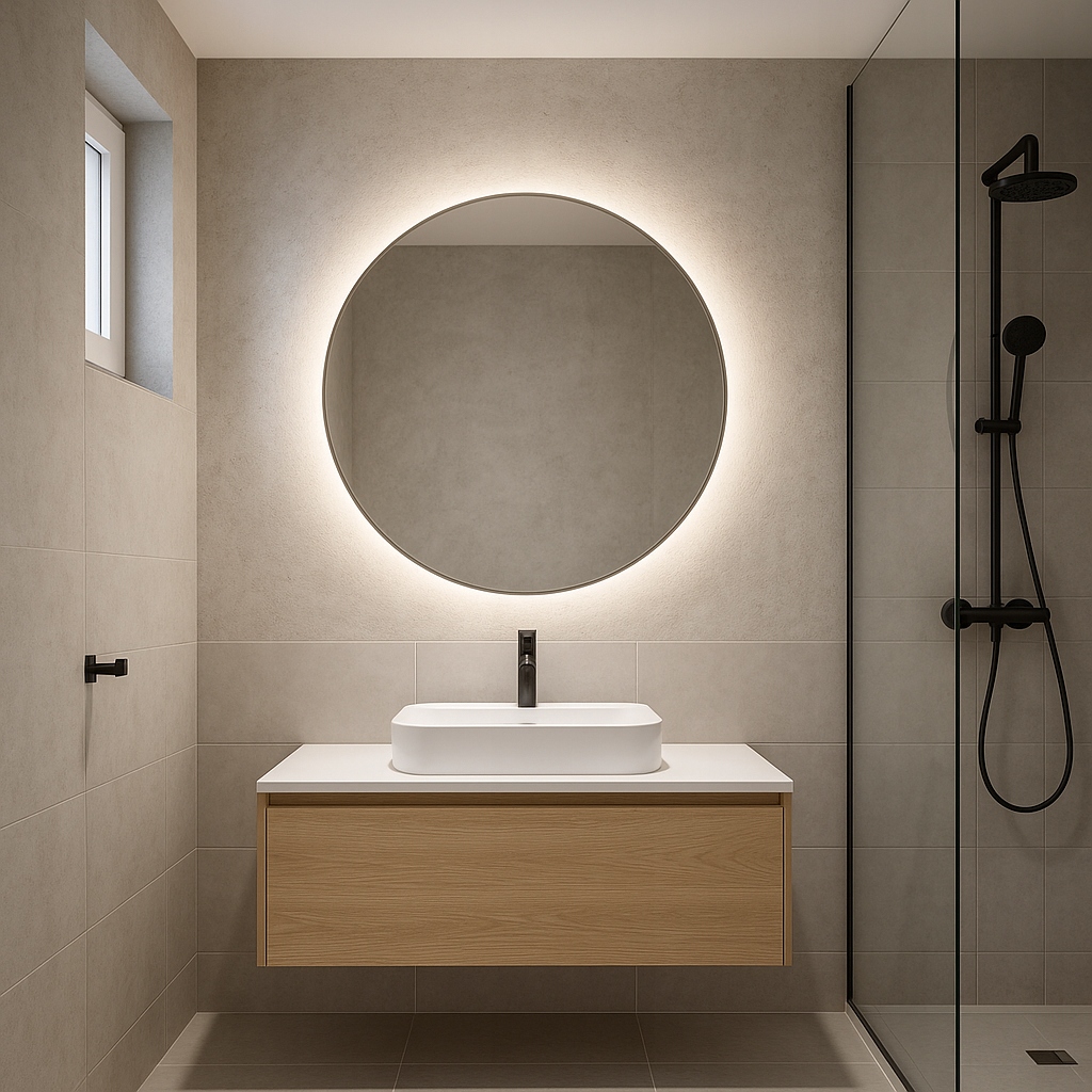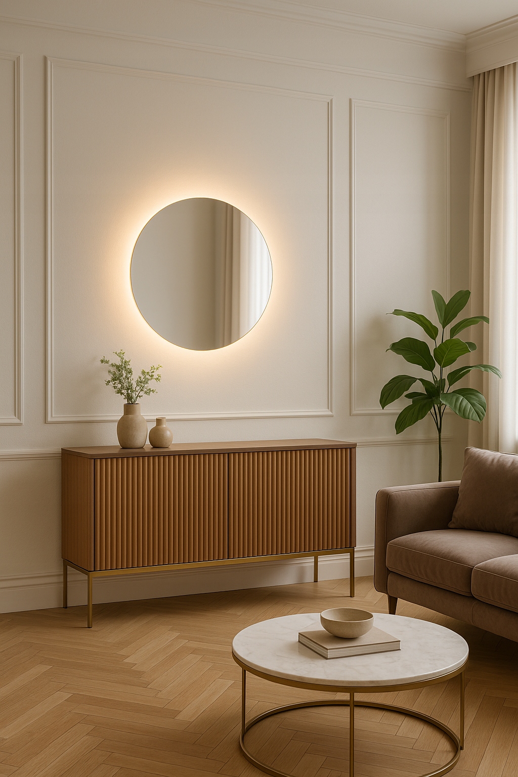 Польське світлодіодне дзеркало COB діаметром 50 см для ванної та передпокою. Рівномірна лінія світла (COB) делікатно освітлює простір, оптично збільшуючи його - ідеально підходить для невеликих приміщень і в той же час елегантно у великих інтер'єрах. Відшліфовані з ЧПУ та поліровані краї забезпечують першокласну обробку. У комплект входить блок живлення IP67, підвіски і шпильки - збірка без сюрпризів. Вища ціна = вища якість: польське виробництво, міцні компоненти та ідеальна посадка.