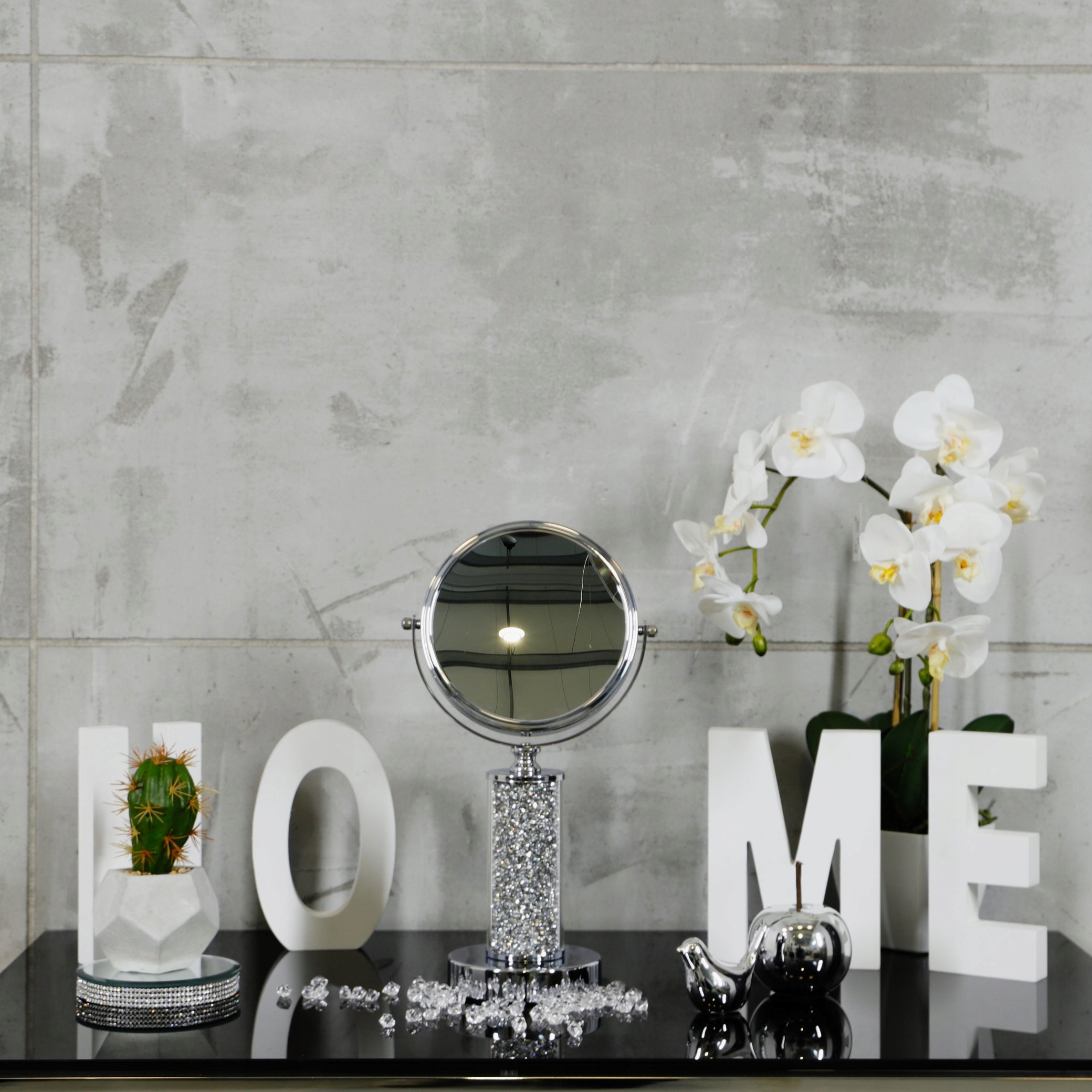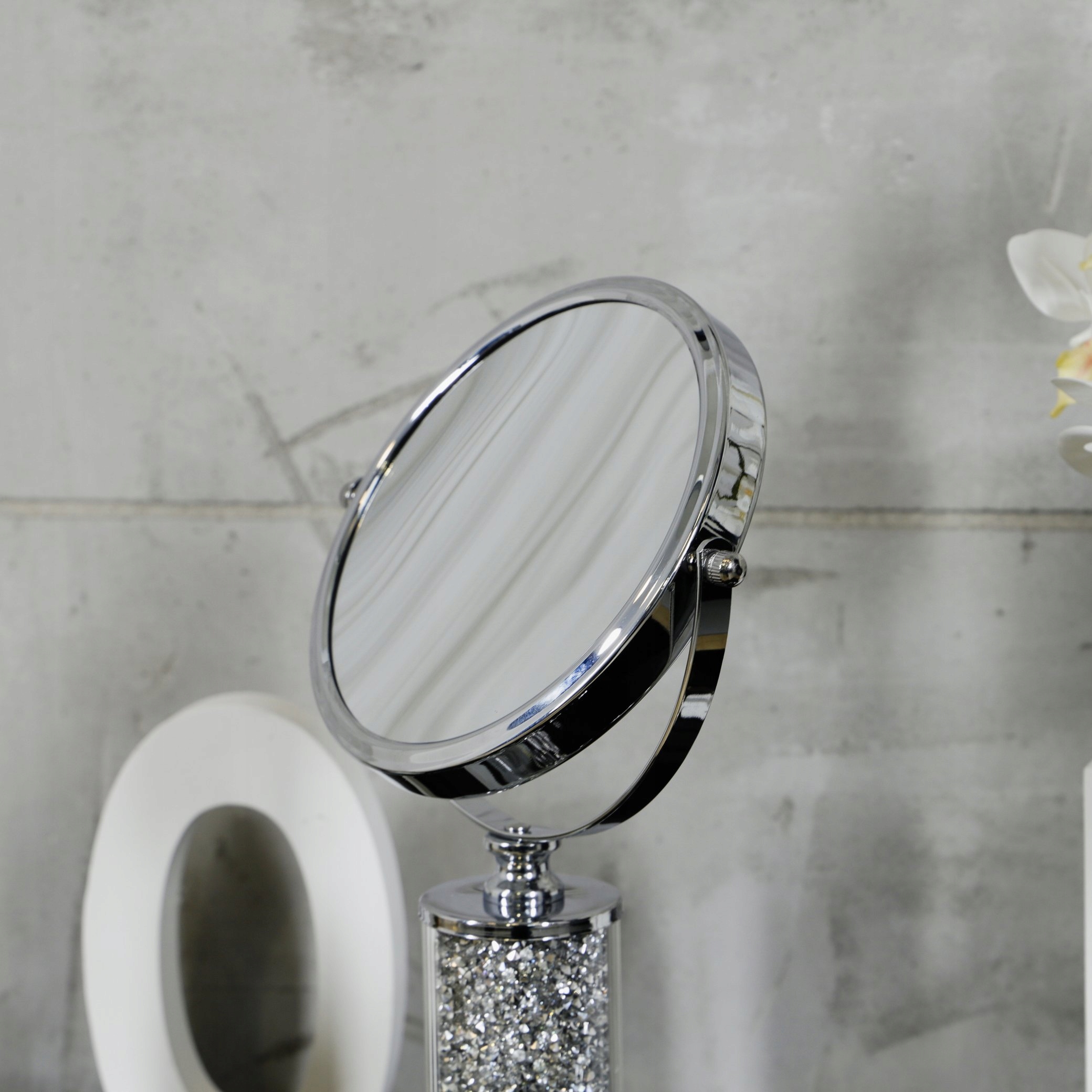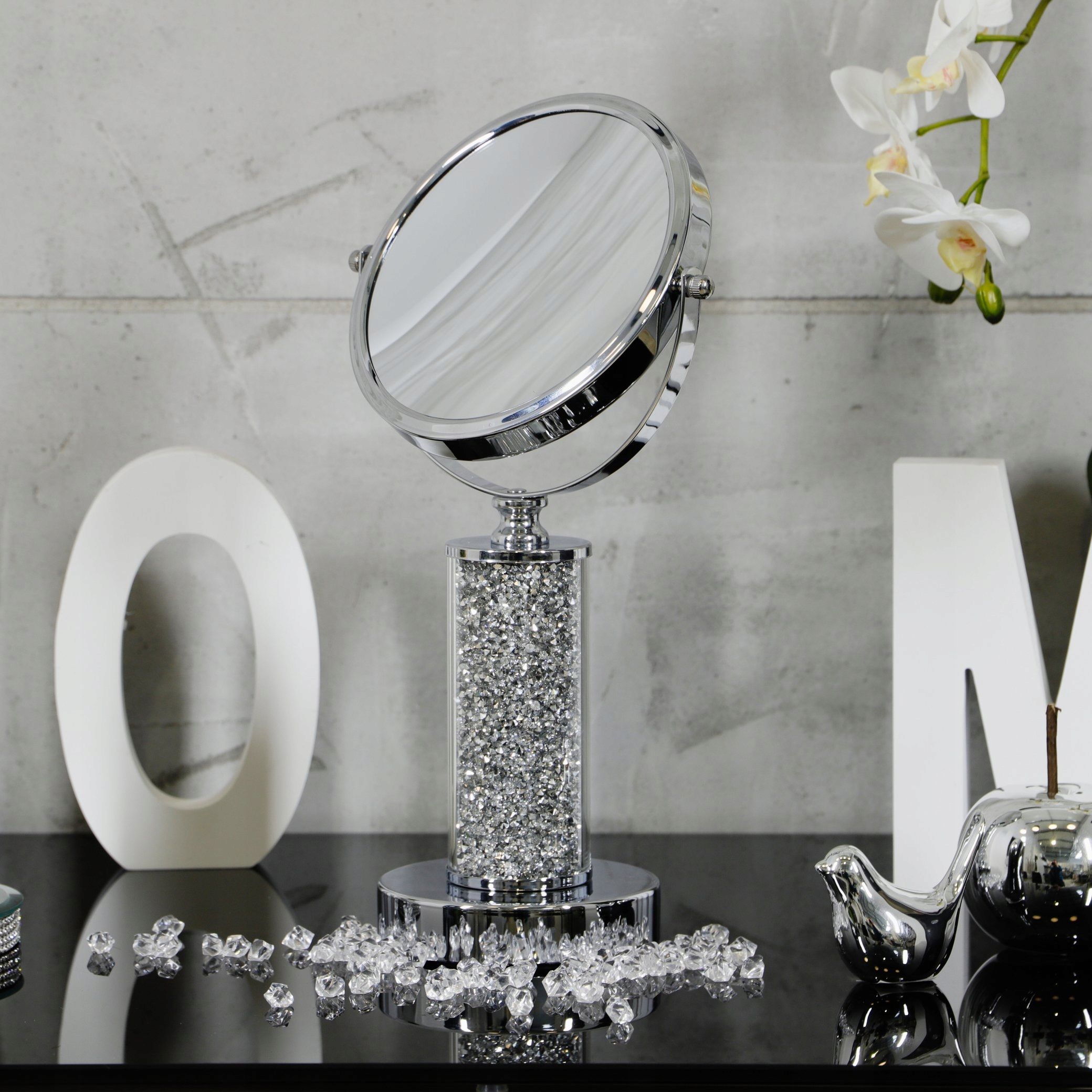Тема продажу - це гламурне дзеркало макіяжу. Дзеркало є подвійним - він має одну поверхню з регулярним відображенням, а інше збільшується. Загальна висота 37.5 см