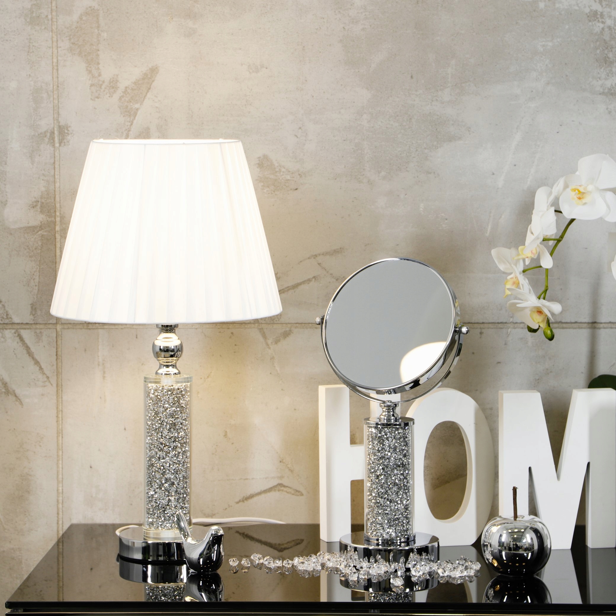 Крім того, масивна дзеркальна ніжка виготовлена з скляної трубки, наповненої дрібним піритом Срібло Торговельні столики кожної леді, але також як оригінальний декоративний елемент. Після -Sales!