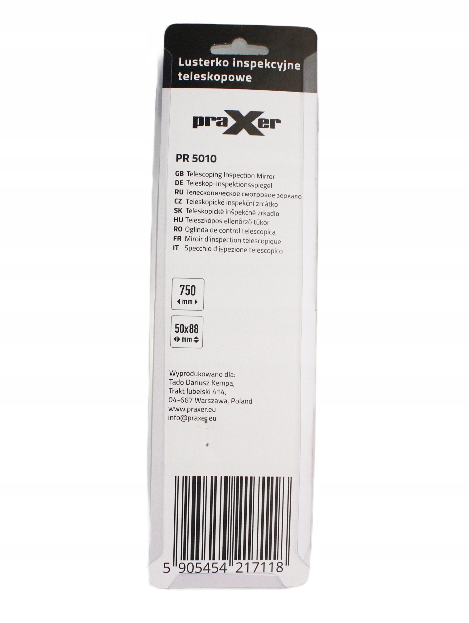 Оглядове дзеркало PRAXER з прямокутною формою є практичним інструментом, який дозволяє точно переглядати місця, недоступні неозброєному оку - в автомобілі, машинах, установках або меблях. Завдяки телескопічній трубі довжиною від 285 до 750 ммдозволяє комфортно працювати без необхідності нахилятися або демонтувати елементи.