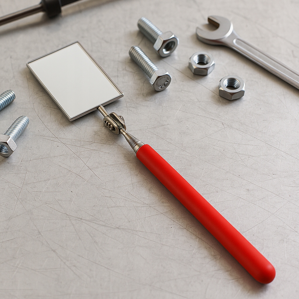 Велике дзеркало розміром 50 × 88 мм забезпечує широке поле зору, що полегшує огляд і діагностику несправностей. Ергономічна ручка гарантує зручність використання навіть при тривалій роботі.
