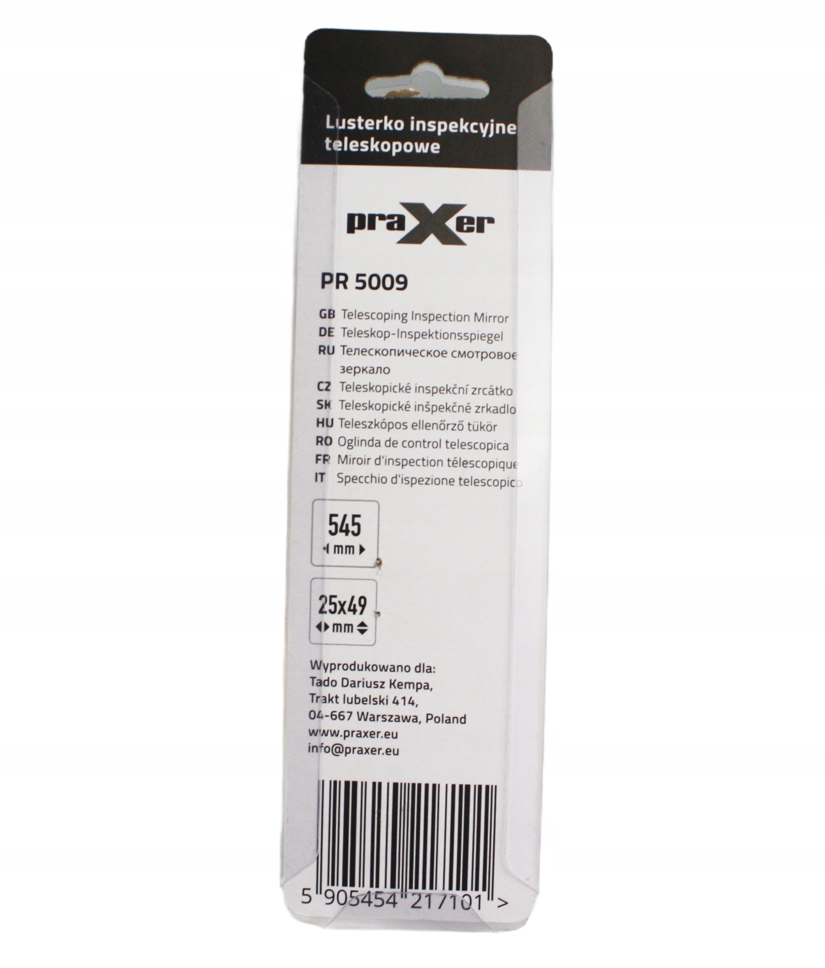 Просматривая «Дзеркало інспекційне телескопічне прямокутне овальне 25x49 мм, 545 мм PRAXER», вы можете быть уверены, что данный товар из каталога «Инспекционные зеркала» будет доставлен из Польши и проверен на целостность. В цене товара, указанной на сайте, учтена доставка из Польши. Внимание!!! Товары для Евросоюза, согласно законодательству стран Евросоюза, могут отличаться упаковкой или наполнением.
