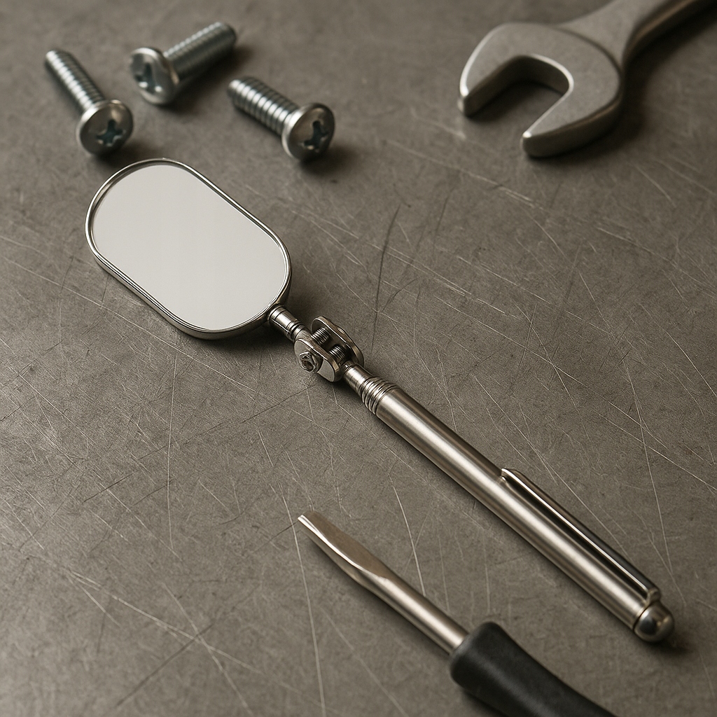 Дзеркало розміром 25 × 49 мм забезпечує чітке відображення зображення, а ергономічна ручка гарантує зручність роботи навіть при тривалому використанні. Додатковою перевагою є затискач у вигляді ручки, який дозволяє прикріпити інструмент до кишені чи сумки з інструментами - завжди під рукою, завжди готовий до використання.