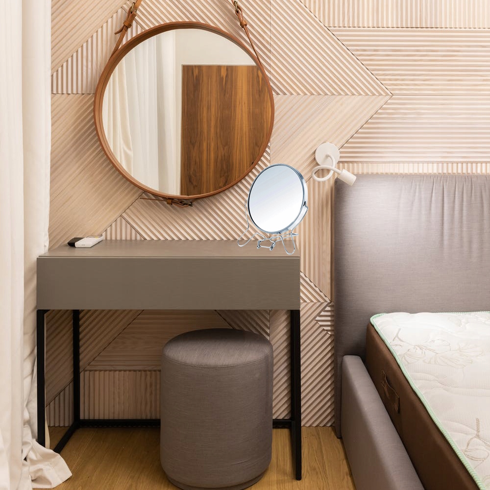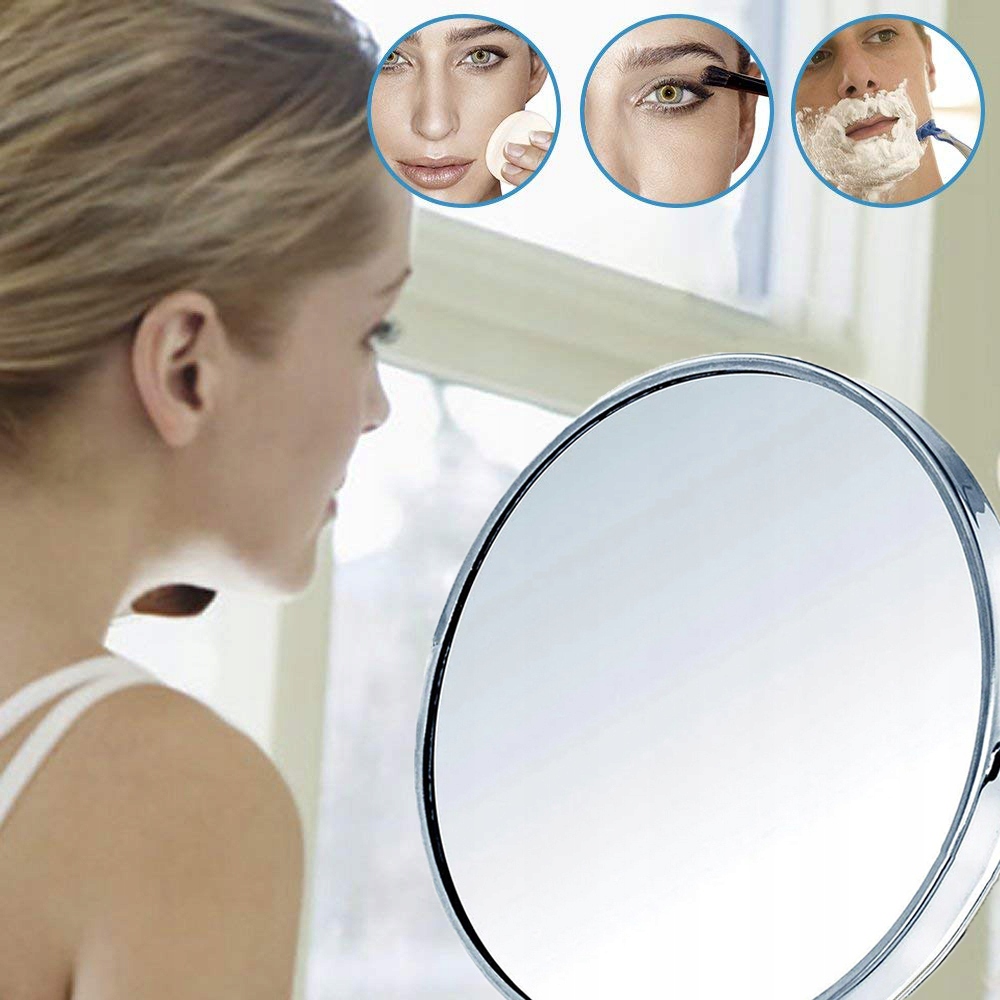 Двостороннє косметичне дзеркало - незамінний помічник при щоденному догляді, макіяжі або гоління. Збільшення до 200% дозволяє виконувати ці дії акуратно й точно. Інша сторона дзеркала показує реальний розмір. Він чудово підійде не лише у ванній, але й на столику в спальні.