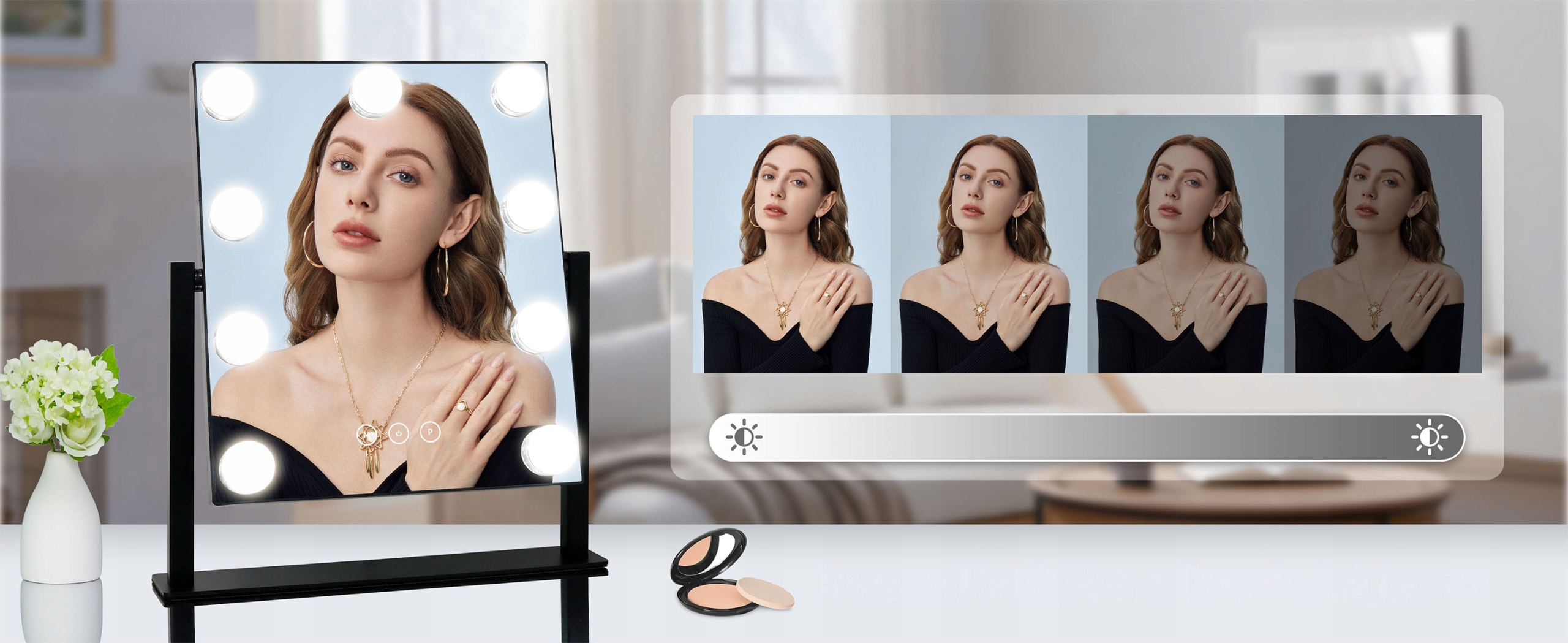 🎁💝 【Смачний вибір подарунка】 Це практичне світлодіодне косметичне дзеркало є ідеальним подарунком для жінок. Дзеркало для макіяжу має романтичне, м'яке освітлення та практичні функції, що робить його ідеальним для нанесення макіяжу. Ви можете використовувати його в різних місцях, таких як спальні, ванні кімнати, вітальні тощо. Дзеркало для макіяжу можна використовувати для макіяжу, догляду за шкірою, освітлення та фотографування.