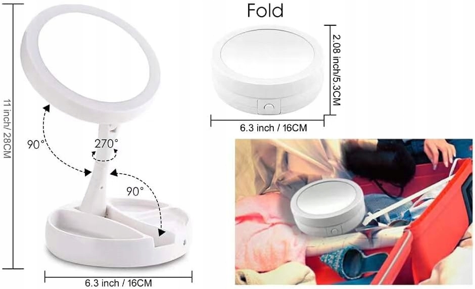 КРУГЛЕ КОСМЕТИЧНЕ ДЗЕРКАЛО З LED ПІДСВІТЛЕННЯМ - ЗБІЛЬШЕННЯ x 10