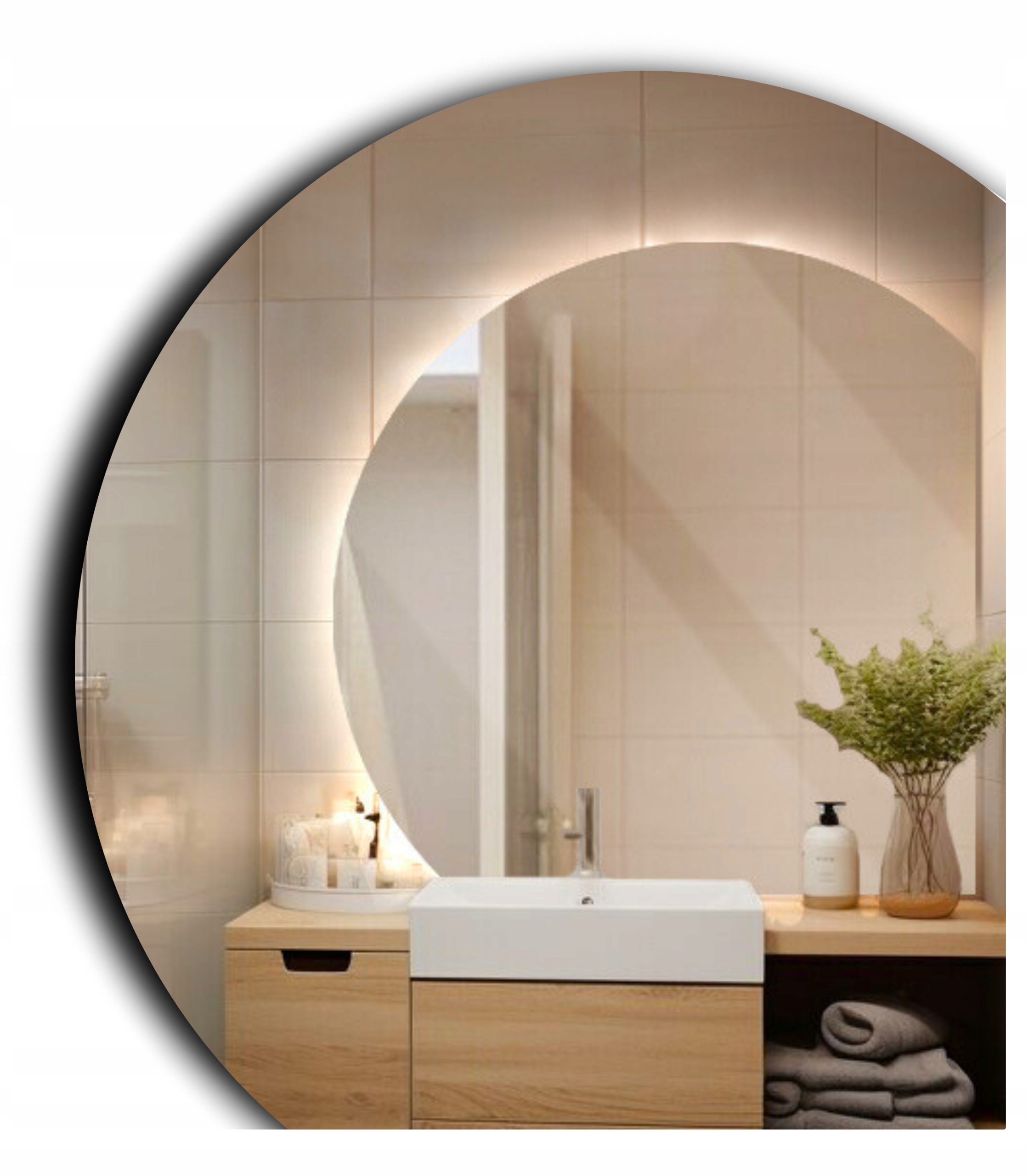 ☀️ Задня сторона невмонтована, а підсвічування створює світло навколо дзеркала - світлодіодне освітлення тільки по дузі - без прямої кромки ❗️ ❗️