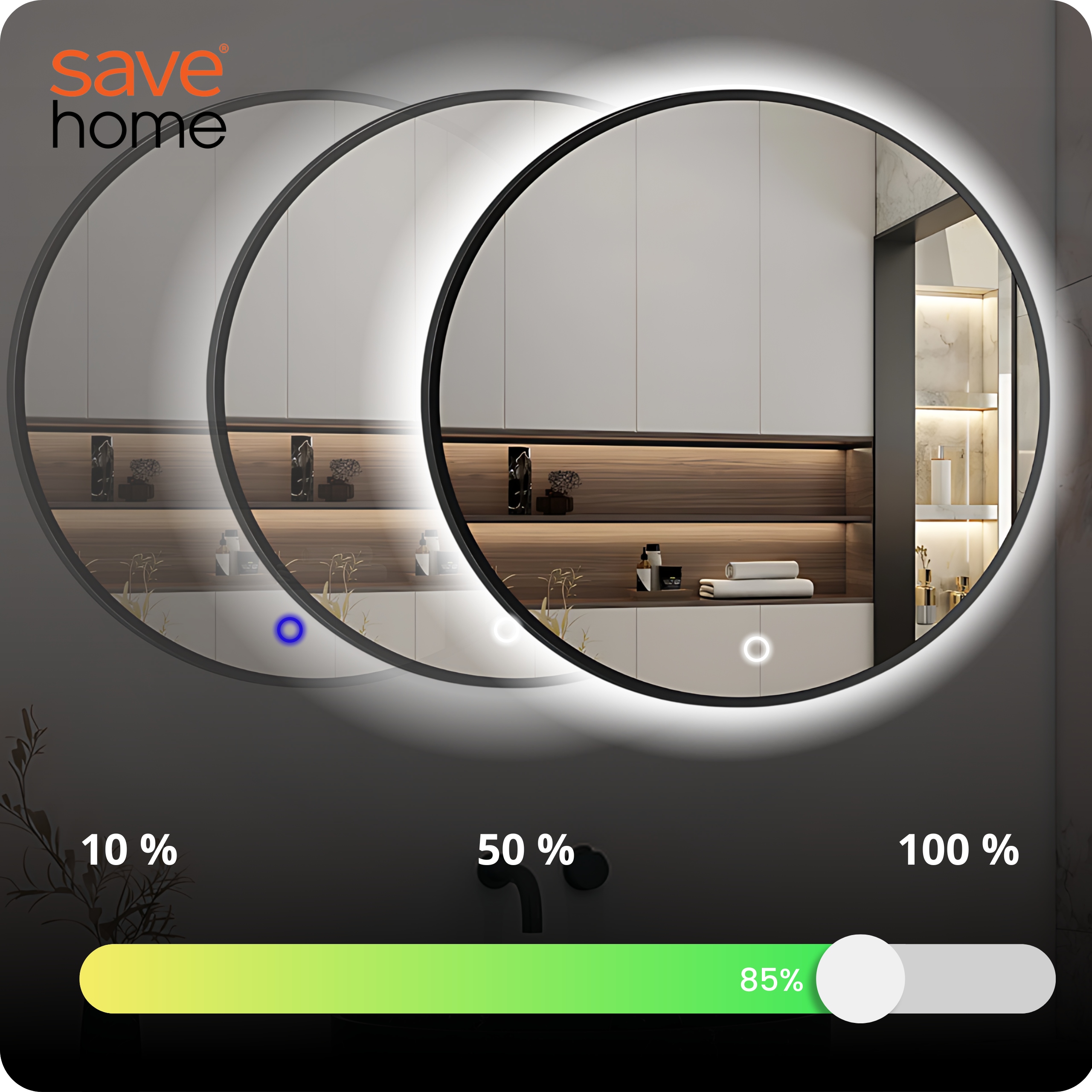 Дзеркалоза допомогою SAVE ®HOME Світлодіод із сенсорним регулюванням інтенсивності світла - це поєднання сучасного дизайну та практичних рішень. Завдяки цій функції ви можете налаштувати освітлення під свої індивідуальні потреби та вподобання, створюючи ідеальні умови для щоденного догляду.