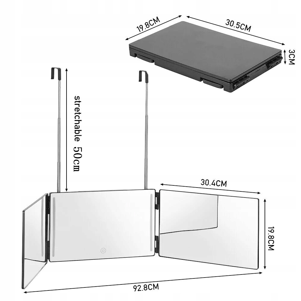 - Тристоронній дизайн дозволяє побачити передню, сторону та навіть задню частину голови, щоб створити ідеальний вигляд зачіски та макіяжу. У обертових гачках ви можете повісити їх де завгодно і пристосуватися до ідеальної висоти за допомогою телескопічних барів.