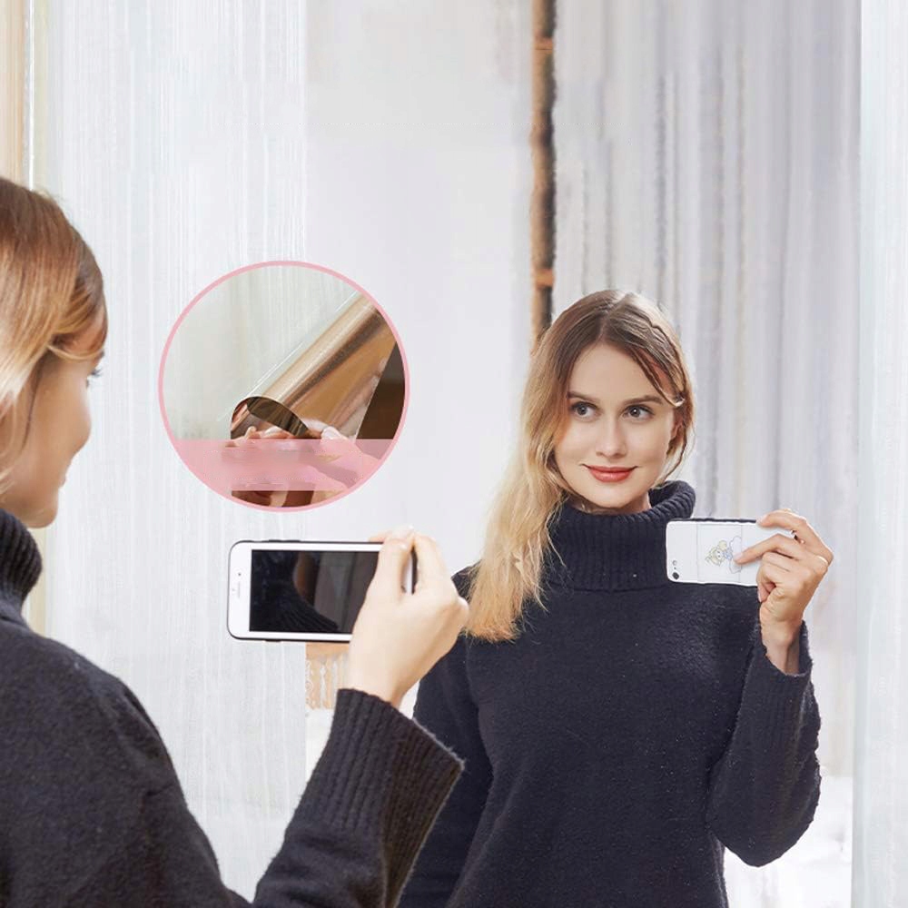 Його можна використовувати як дзеркало. Сильно натисніть, щоб видалити будь-які повітряні бульбашки, і приклейте цю самоклеючу дзеркальну наклейку до гладких текстурованих поверхонь, таких як скло, плитка та дверцята шафи. (Примітка: наклейки не працюватимуть на білих стінах, шпалерах або текстурованих поверхнях.)
