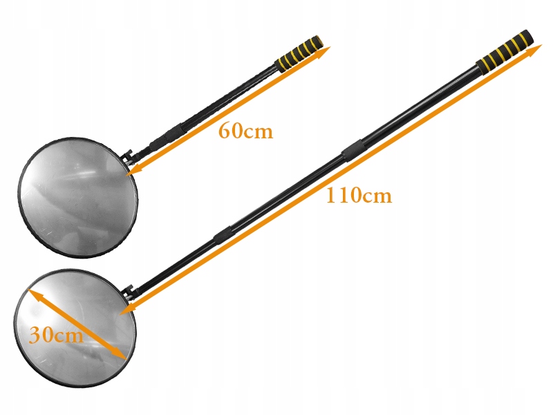 Діагностичне дзеркало огляду діаметром 30 см завдяки опуклому поверхні, виготовленій з міцної та міцної акрилу , дозволяє отримати набагато більший кут перегляду та високу прозорість зображення . Дзеркала цього типу ідеально підходять для автомобілів для початкового огляду підвіски, двигуна, шасі. 60-110см . Переміщення .