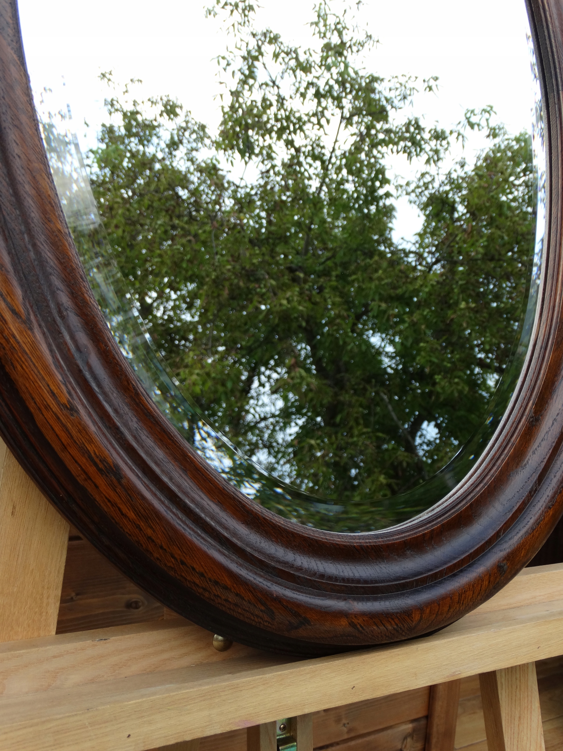 Овальне скошене дзеркало з дуба в темній рамі