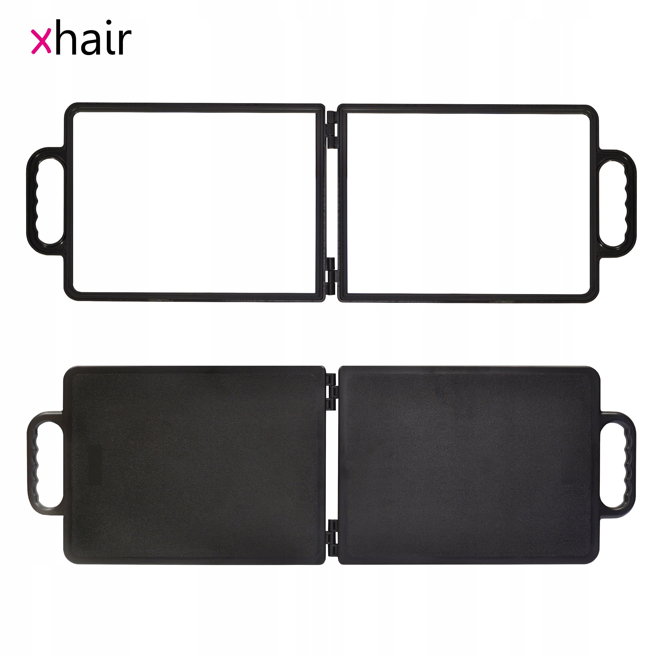 Велике розкладне чорне перукарське дзеркало - двостулкове з ручками