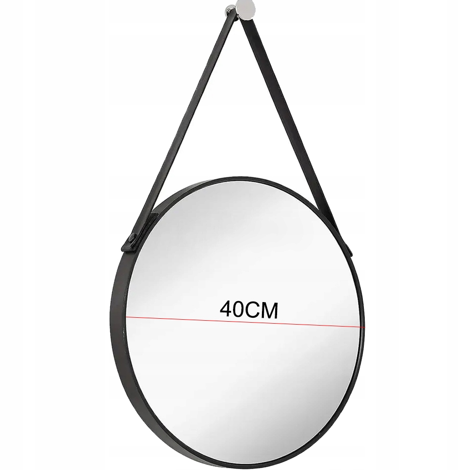 ДЗЕРКАЛО ПІДВІСНЕ НА РЕМЕНІ, КРУГЛЕ, РЕГУЛЬОВАНЕ, ВАННА, ВІТАЛЬНА, ЛОФТ, ЧОРНЕ 40 СМ