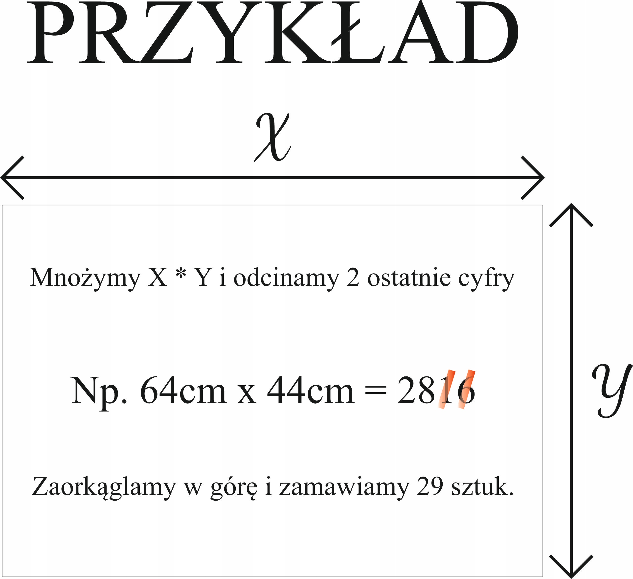 Замовляючи формат 64x44 см, ви множите ці дві цифри разом і ділите на 100 або просто відрізаєте дві останні цифри й округляєте до замовлення відповідну кількість штук.
