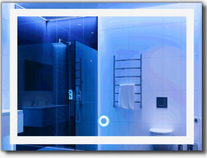 2️⃣ Сенсорний перемикач - встановлюється на нижньому краю дзеркала , посередині ширини . Розмір 1 см (дуже непомітний), колір підсвічування СИНІЙ. Напруга живлення 12В