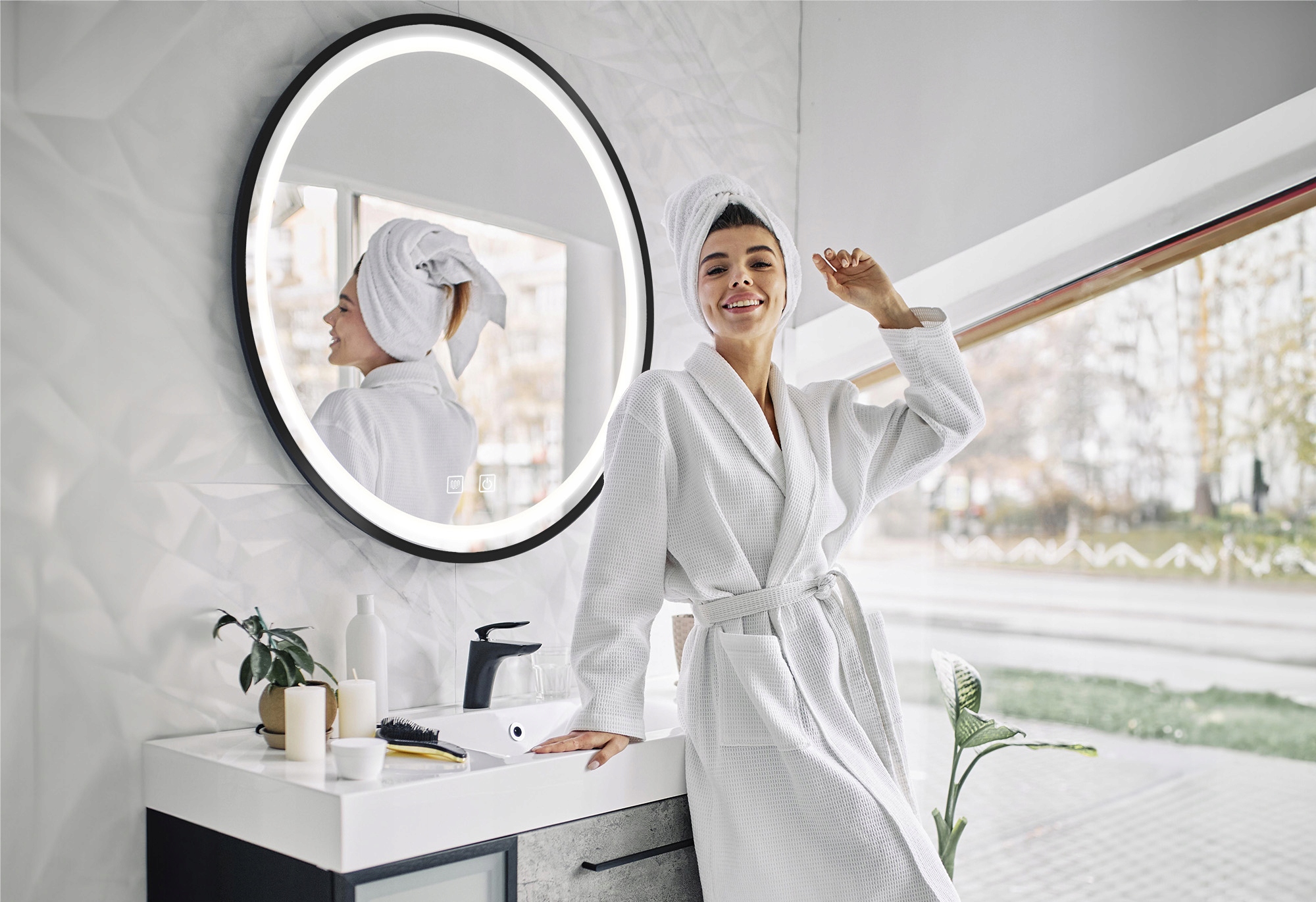 Елегантне світлодіодне дзеркало 80 см - ідеальне поєднання функціональності та сучасного дизайну. його проста, кругла форма з тонкою чорною рамкою ідеально відповідає різним стилям ванних кімнат - як мінімалістичних, так і класичних.