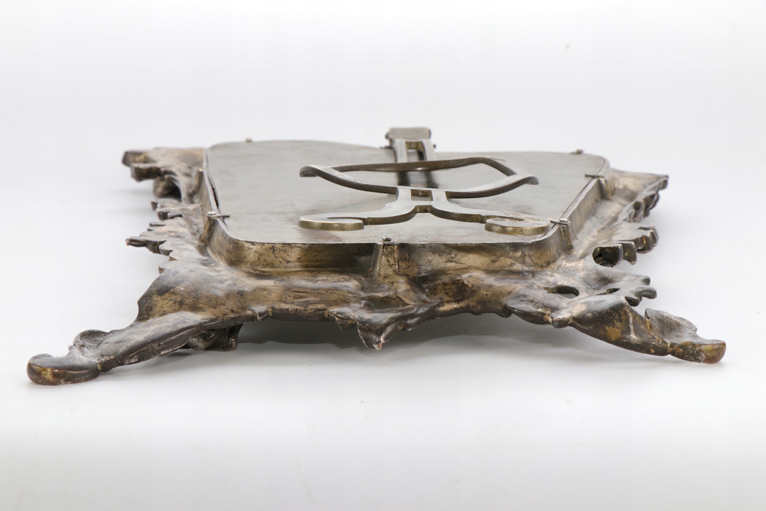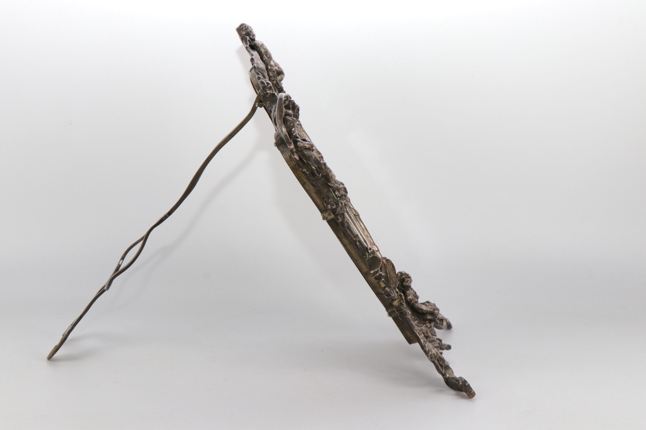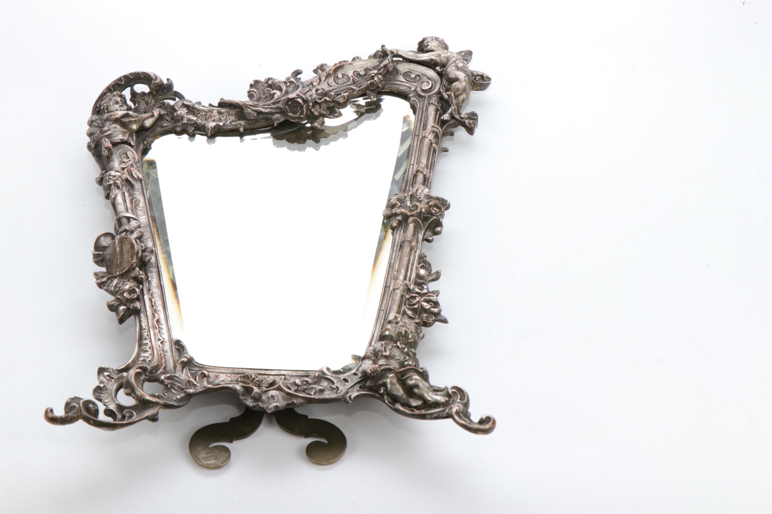 Прекрасне шафне дзеркало в стилі неорококо, багато прикрашене орнаментом у вигляді ангелів та гірлянд. Предмет із литої посрібленої латуні або якогось мідного сплаву. Задня опора з латуні. Дзеркало з оригінальною кришталевою скошеною формою скла.