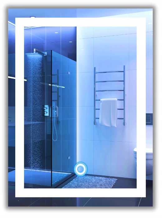 2️⃣ Сенсорний перемикач -встановлюється у нижнього краю дзеркала, посередині ширини. Розмір 1 см (дуже непомітний), колір підсвічування СИНІЙ. Напруга живлення 12В