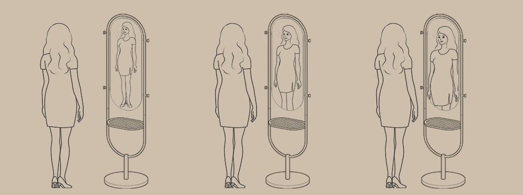 Дзеркало відображає весь силует, коли ми стоїмо перед ним на відстані прибл. метр.