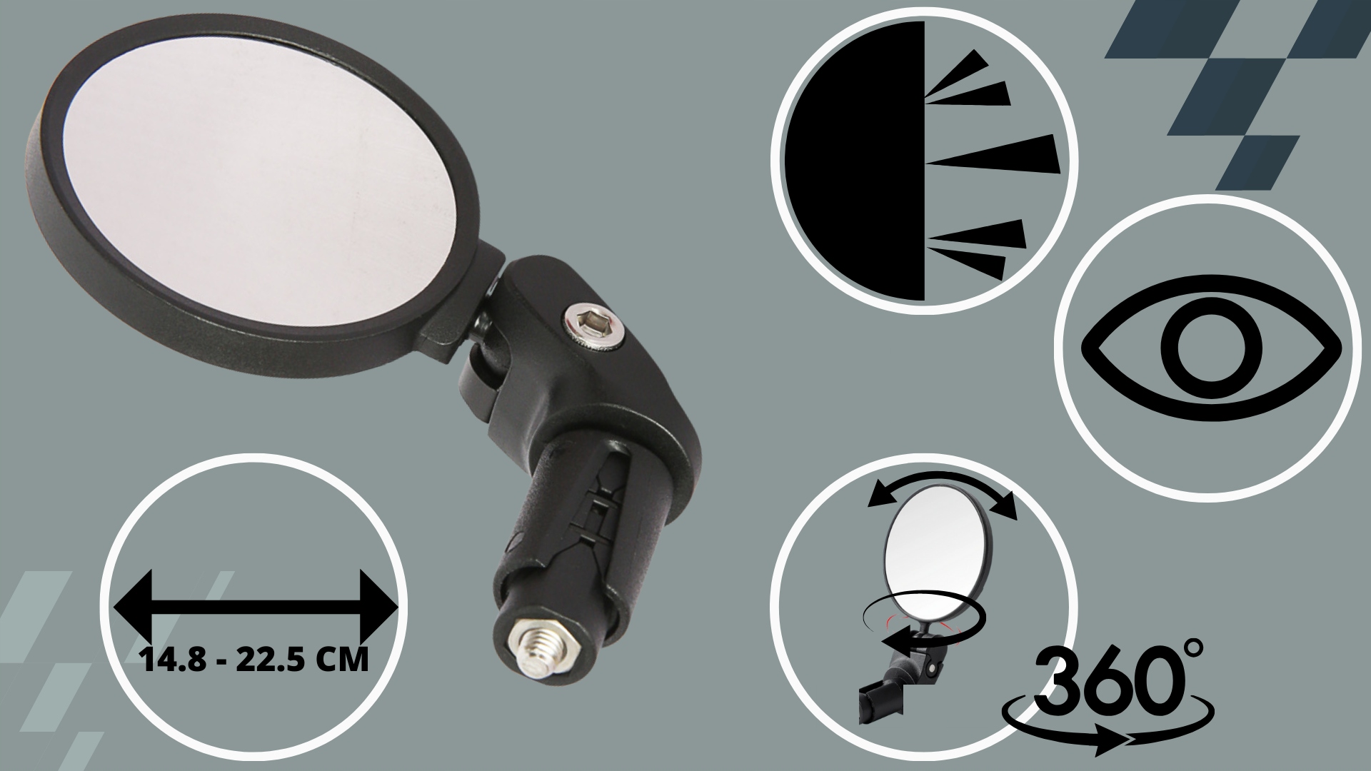 - ✅Дзеркало регулюється під будь-яким кутом. Обертання на 360 градусів дозволяє спостерігати за всім навколо під час катання. Переконайтеся, що ви керуєте безпечно.