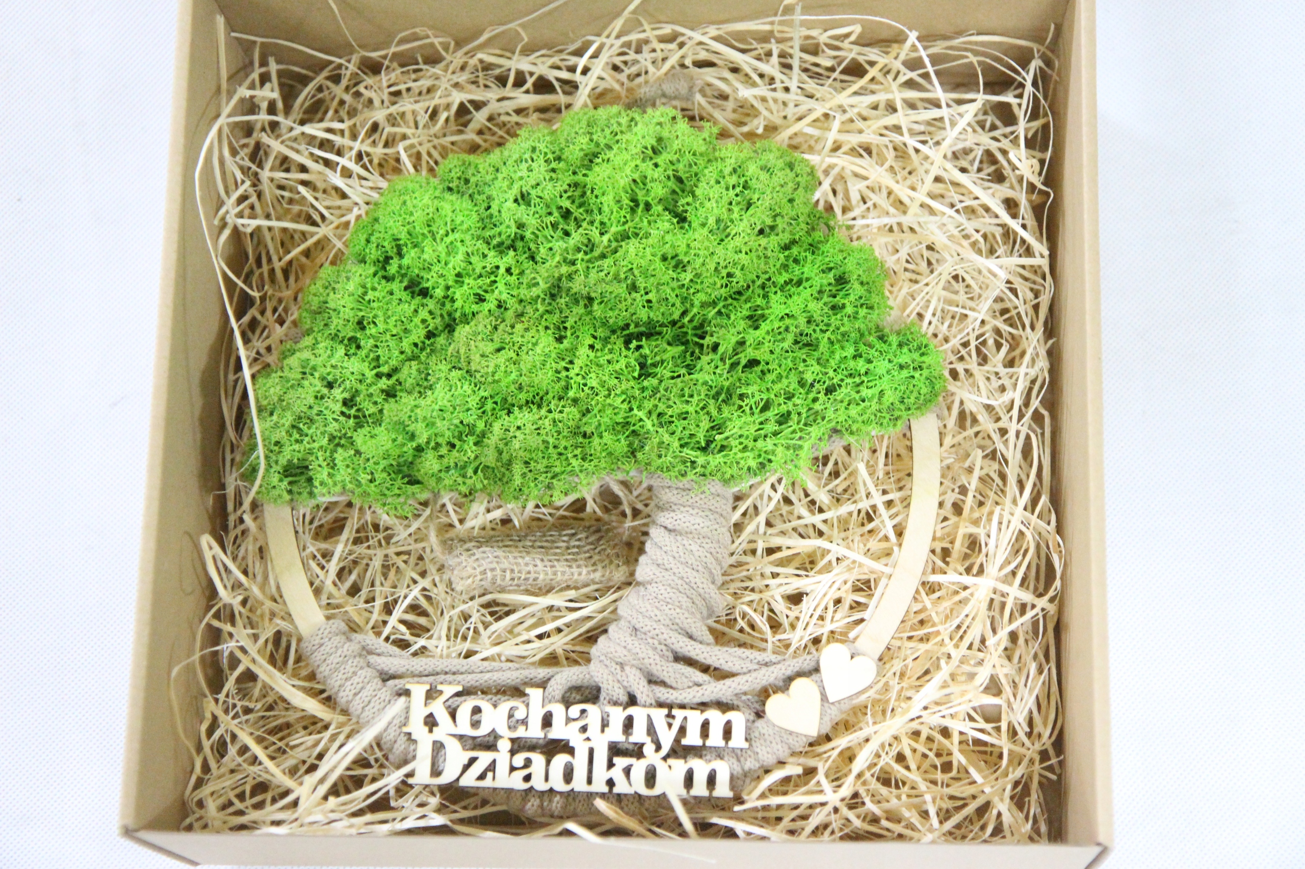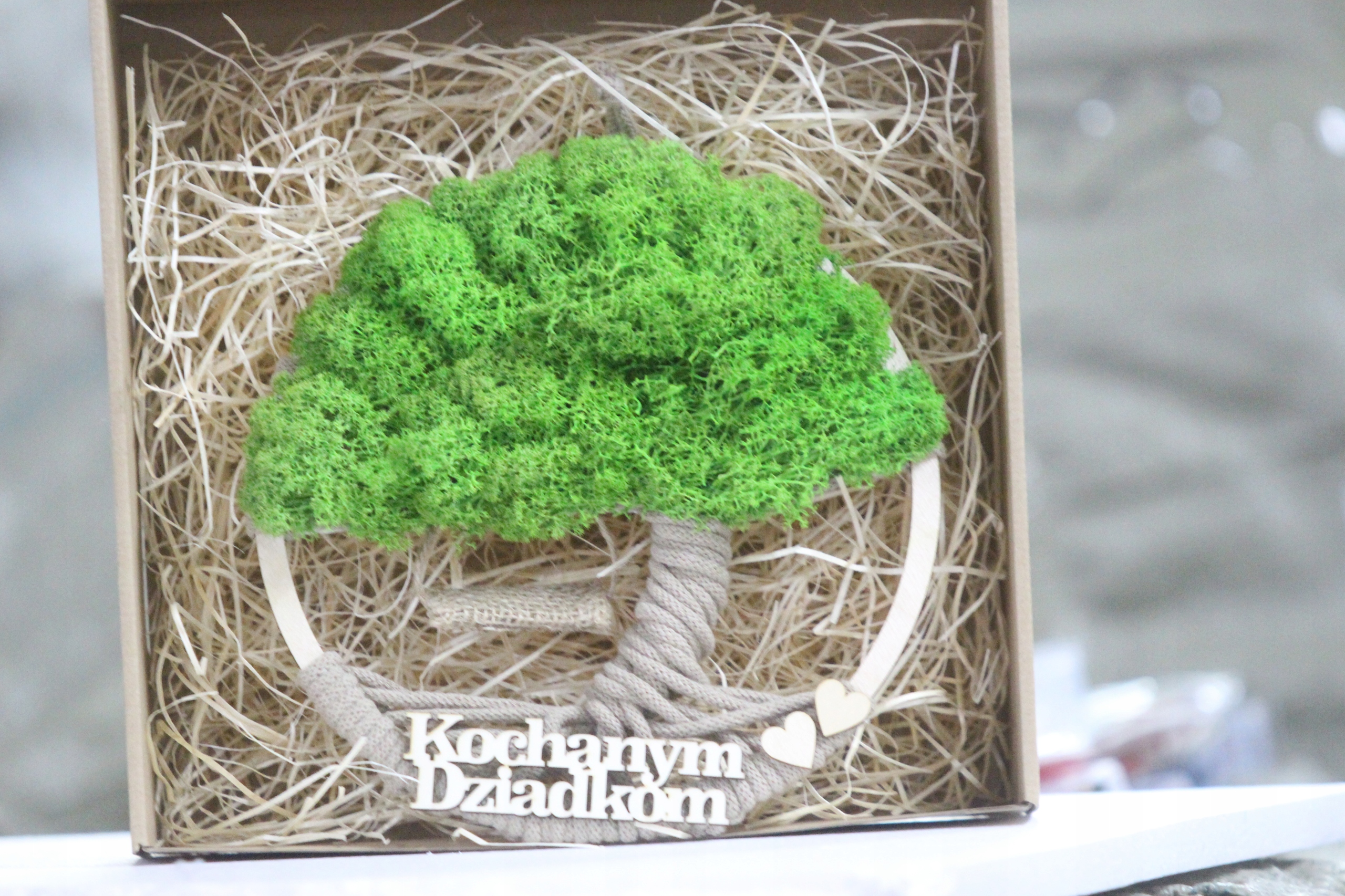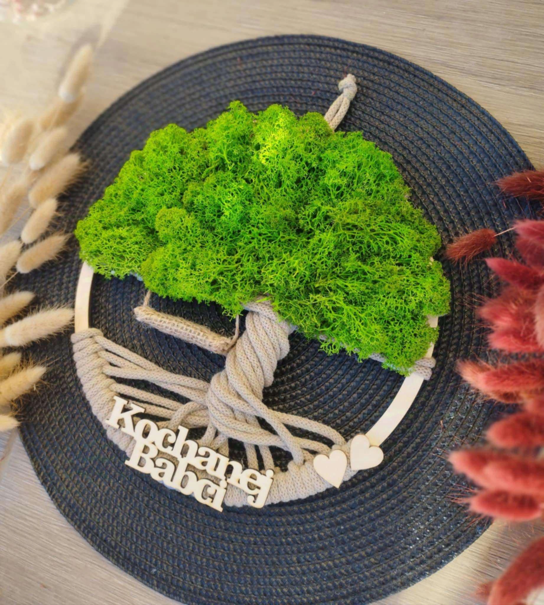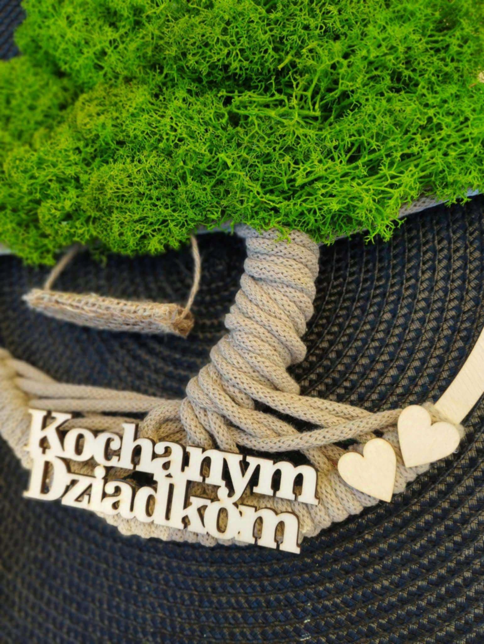 Dzień BABCI DZIADKA prezent Makrama DRZEWO drzewko z mchem napis OPAKOWANIE
