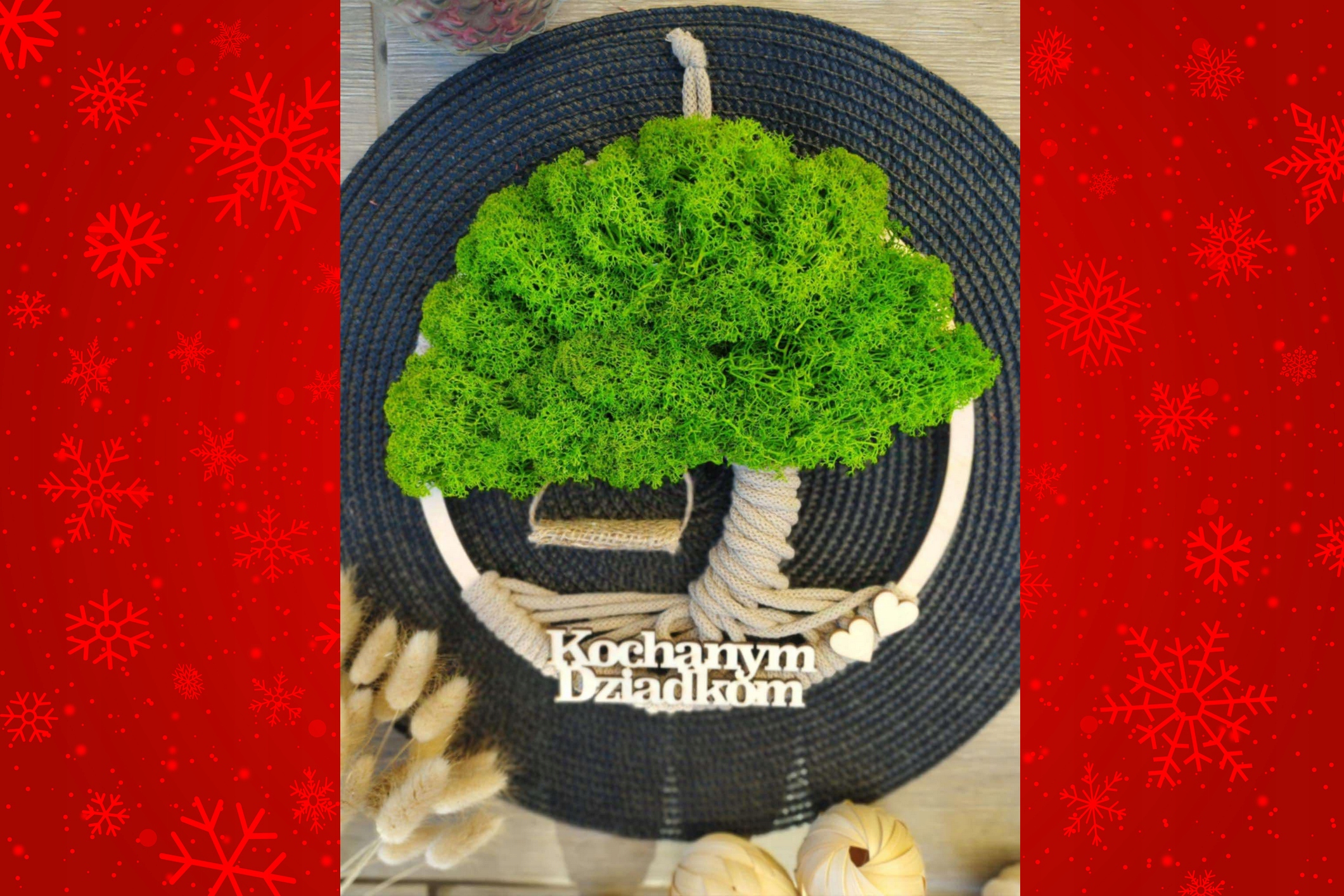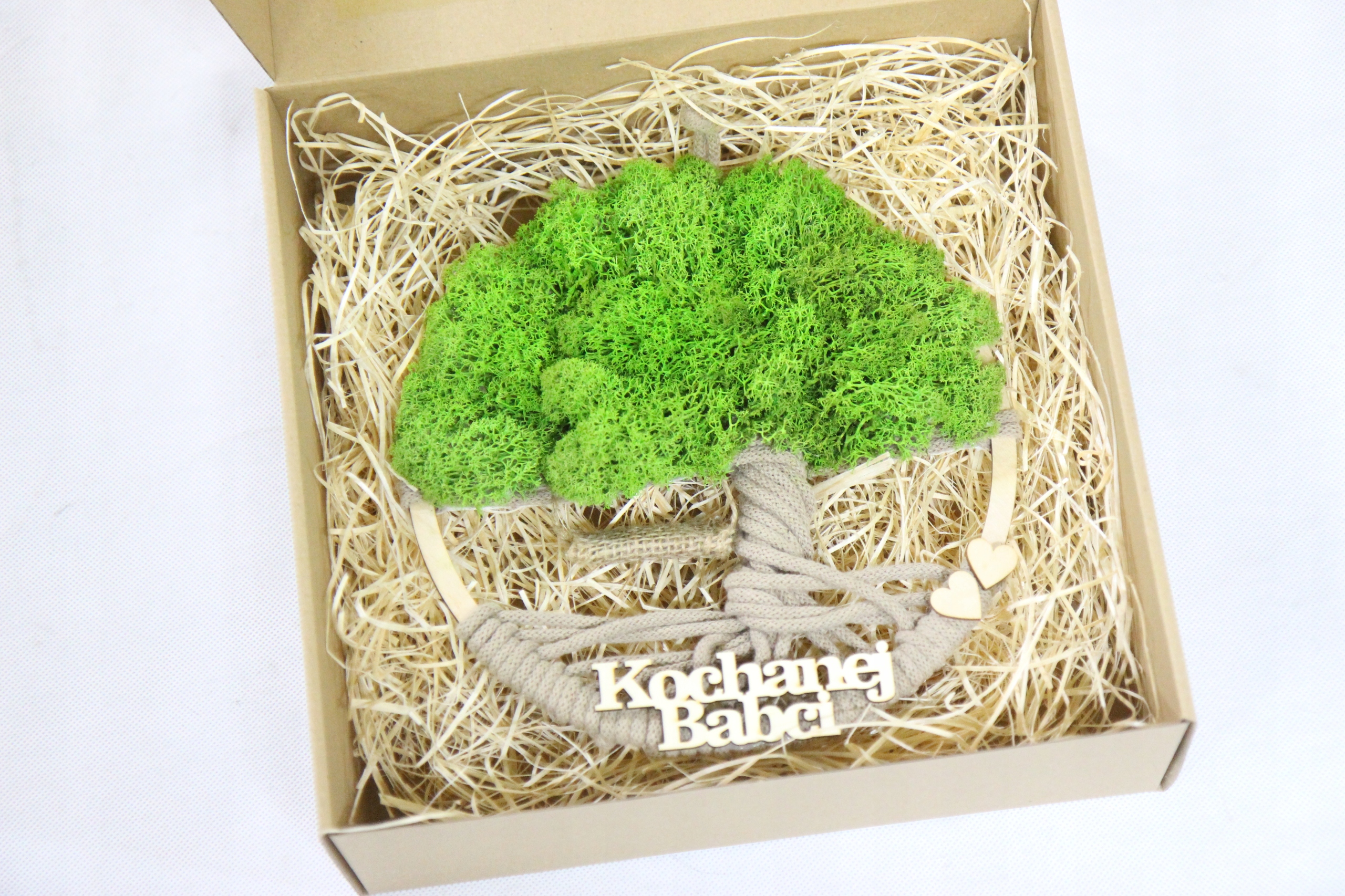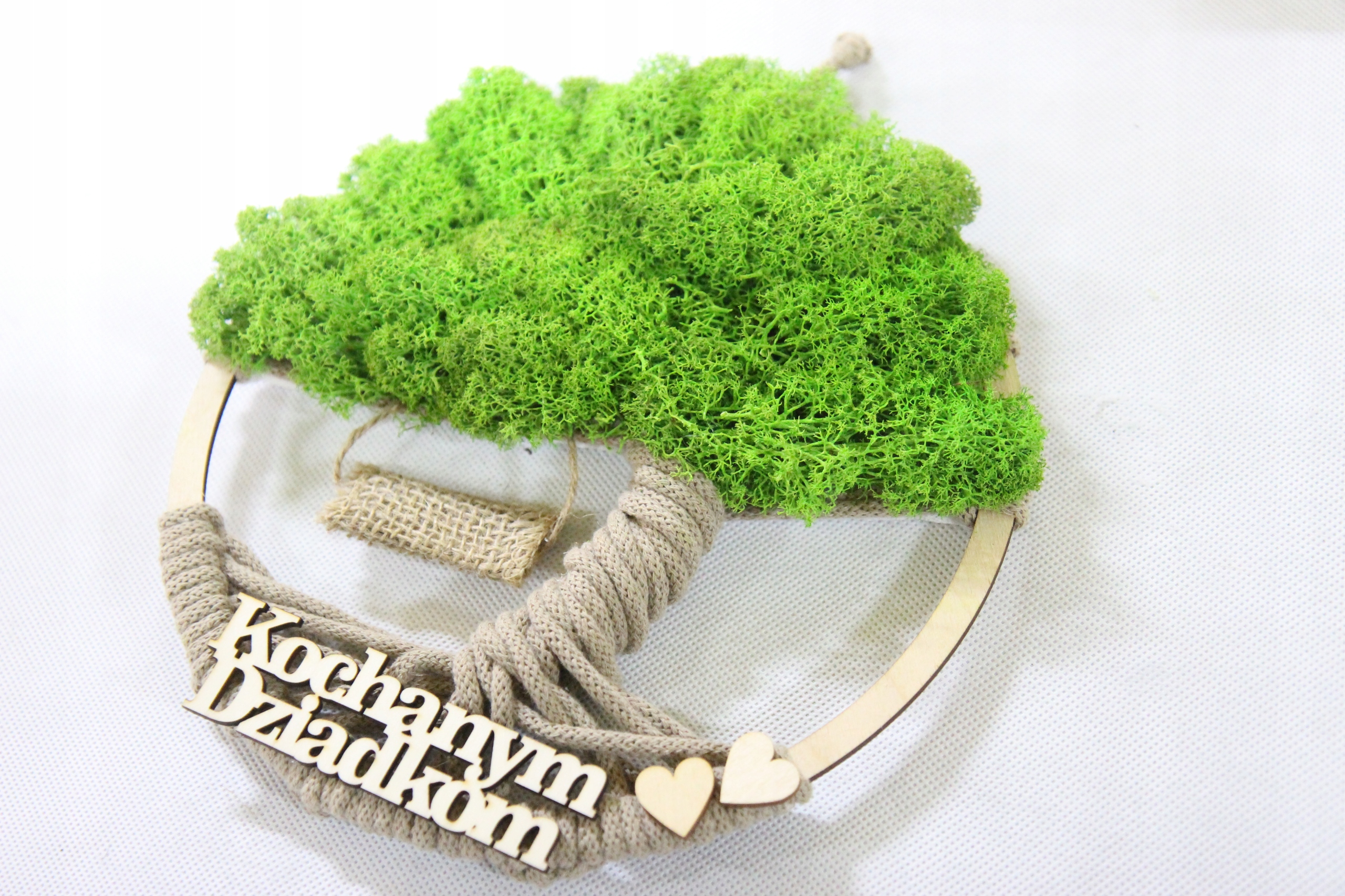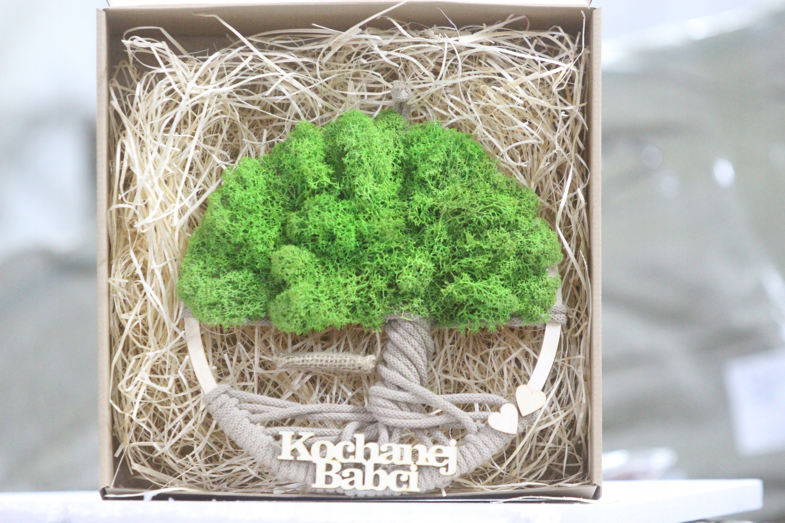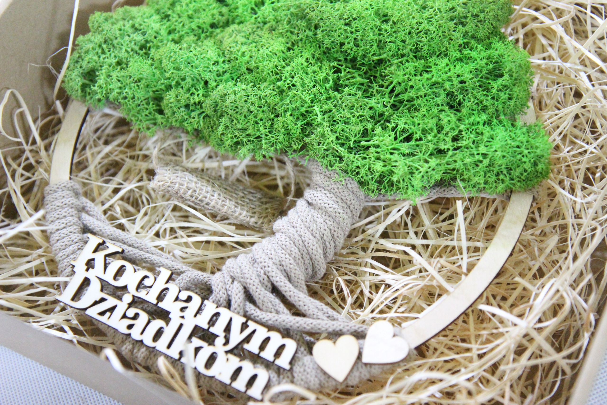 Dzień BABCI DZIADKA prezent Makrama DRZEWO drzewko z mchem napis OPAKOWANIE