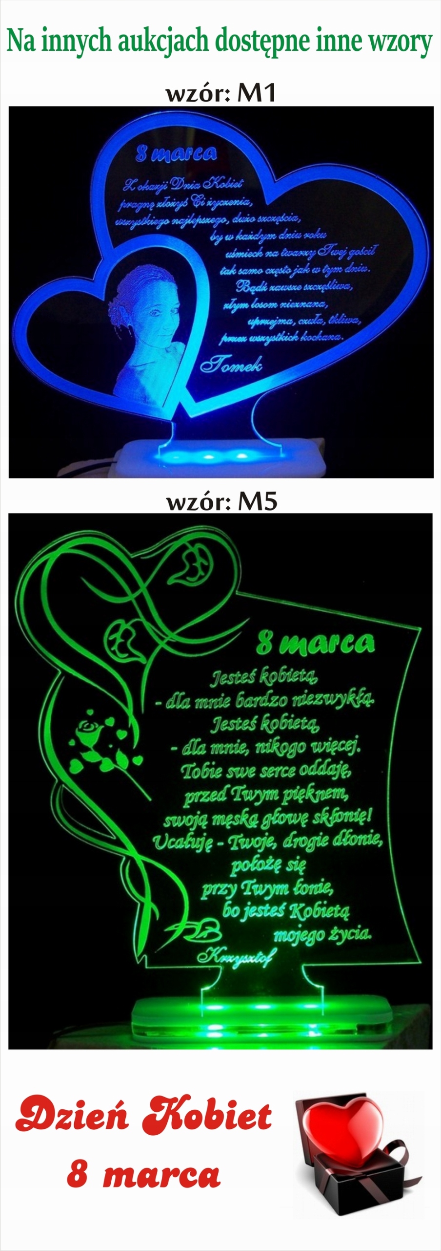 DZIEŃ KOBIET 8 MARCA PODŚWIETLANA STATUETKA LED