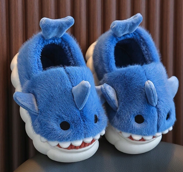 DZIECIĘCE KAPCIE DOMOWE PLUSZOWE CIEPŁE MIĘKKIE REKIN SHARK 32-33
