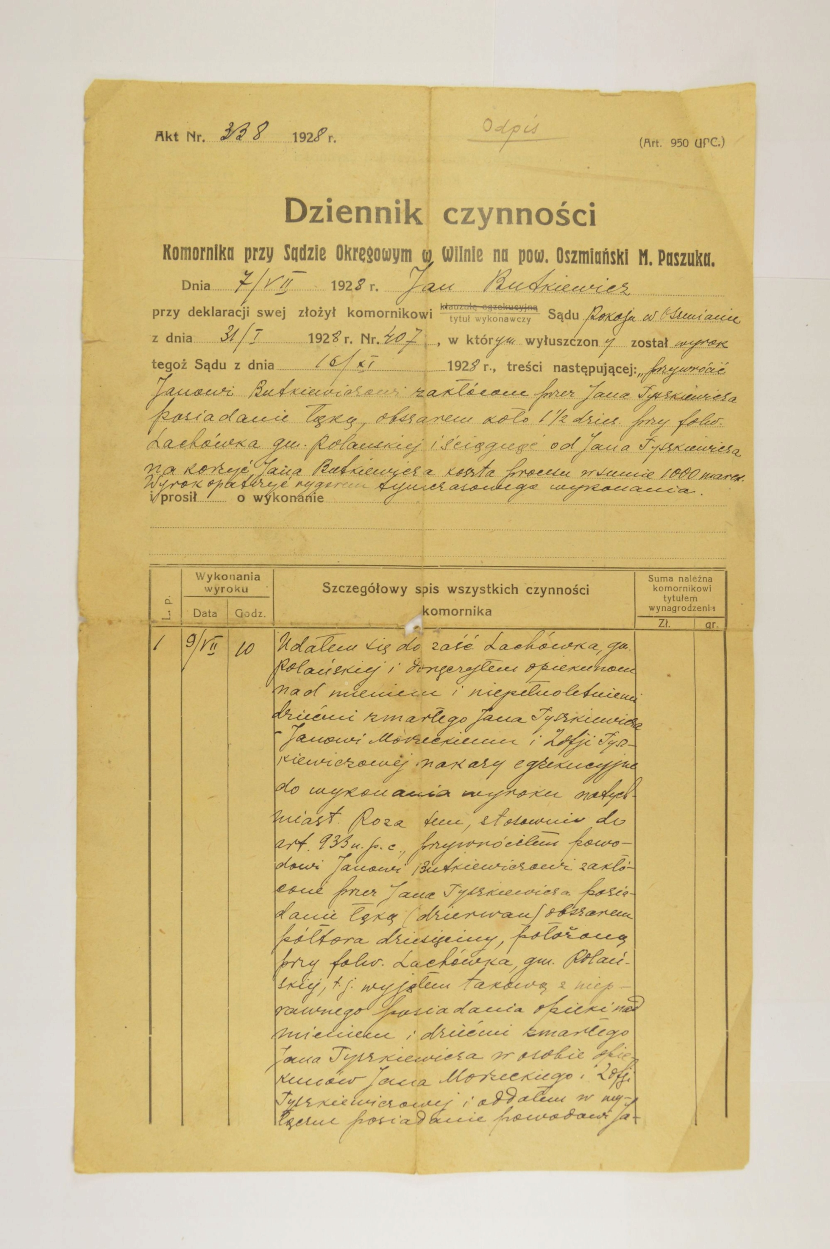DZIENNIK CZYNNOŚCI KOMORNIKA WILNO OSZMIANA 1928 r. CIEKAWY