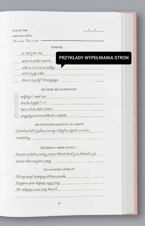 Оплачивая «Dziennik Wdzięczności Produktywności Szczęścia Planer A5 Różowy», вы можете быть уверены, что данное изделие из каталога «Мотивация, личностное развитие» будет доставлено из Польши и проверено на целостность. В цене товара, указанной на сайте, учтена доставка из Польши. Внимание!!! Товары для Евросоюза, согласно законодательству стран Евросоюза, могут отличаться упаковкой или наполнением.