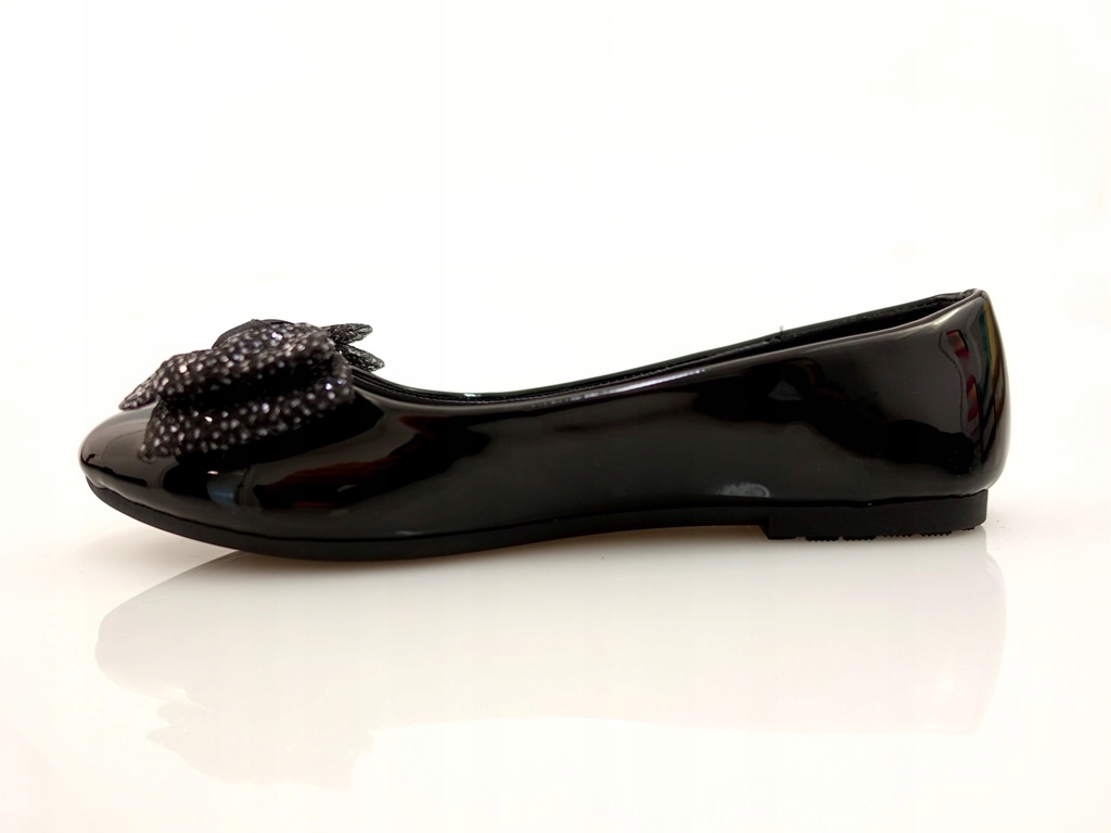 DZIEWCZĘCE BALERINKI CZARNE LAKIER. Z KOKARDĄ