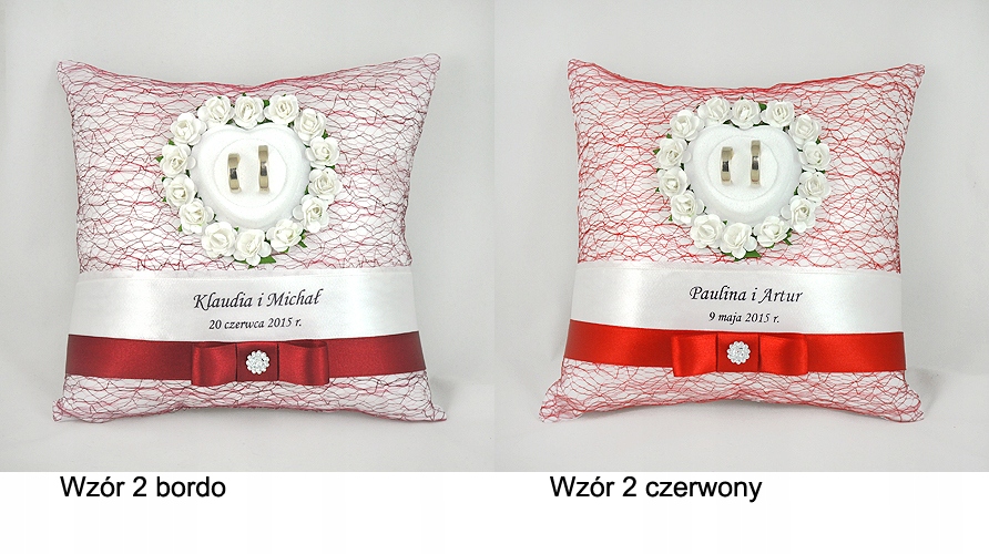 ГАРНІ ПОДУШЕЧКИ, ПРИКРОШЕНІ ВРУЧНУ ДЛЯ ПОДАЧІ ОБРУЧОК - З ІМЕНАМИ ТА ДАТОЮ