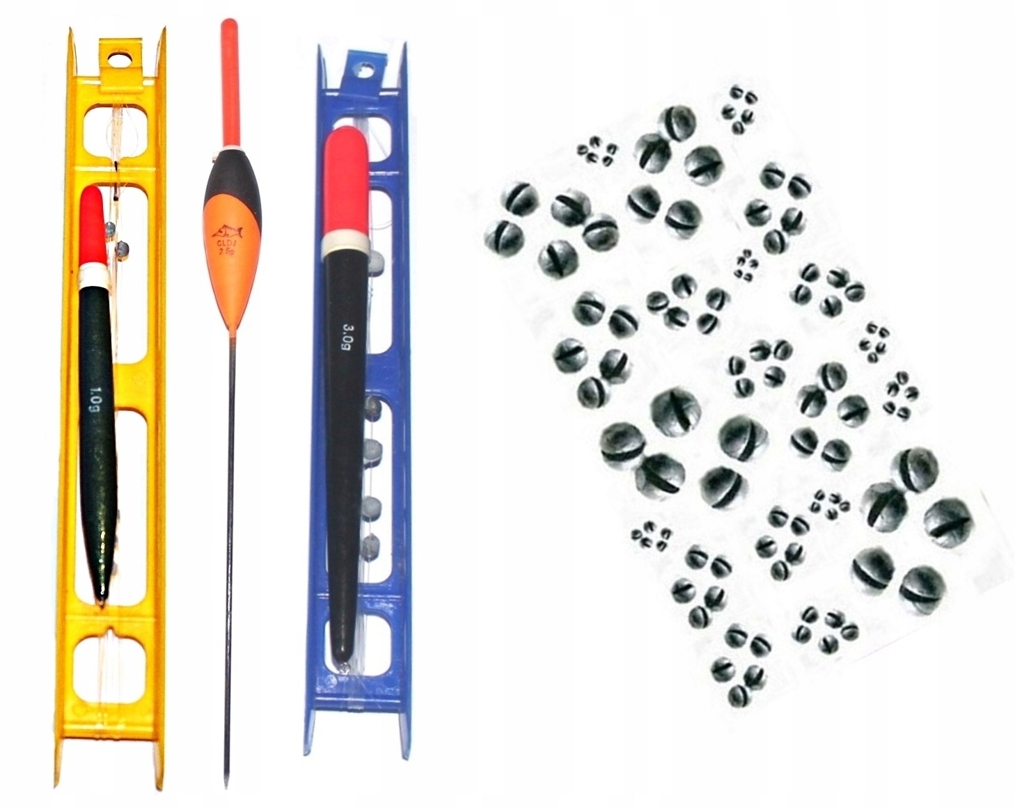 плаваючий поплавок - 1gr. + Два озброєні лідери - гачки з шпателем + вага + лінія - приблизно 5м.