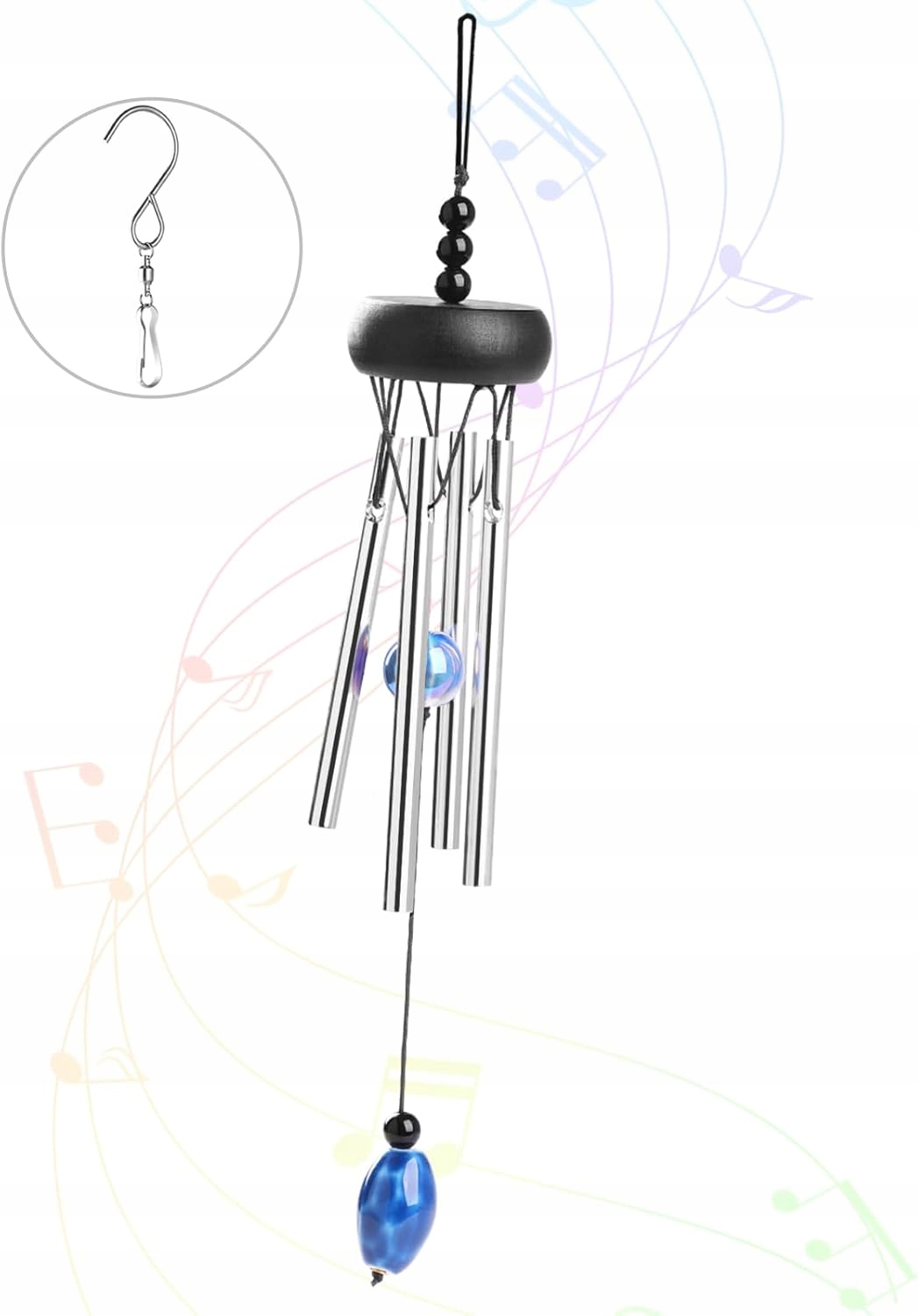 Чотири масивні алюмінієві стрижні в поєднанні з керамічними намистинами роблять приємні, мелодійні звуки на кожному вітрі. Їх заспокійливий звук має розслабляючий ефект і допомагає зменшити напругу після важкого дня.