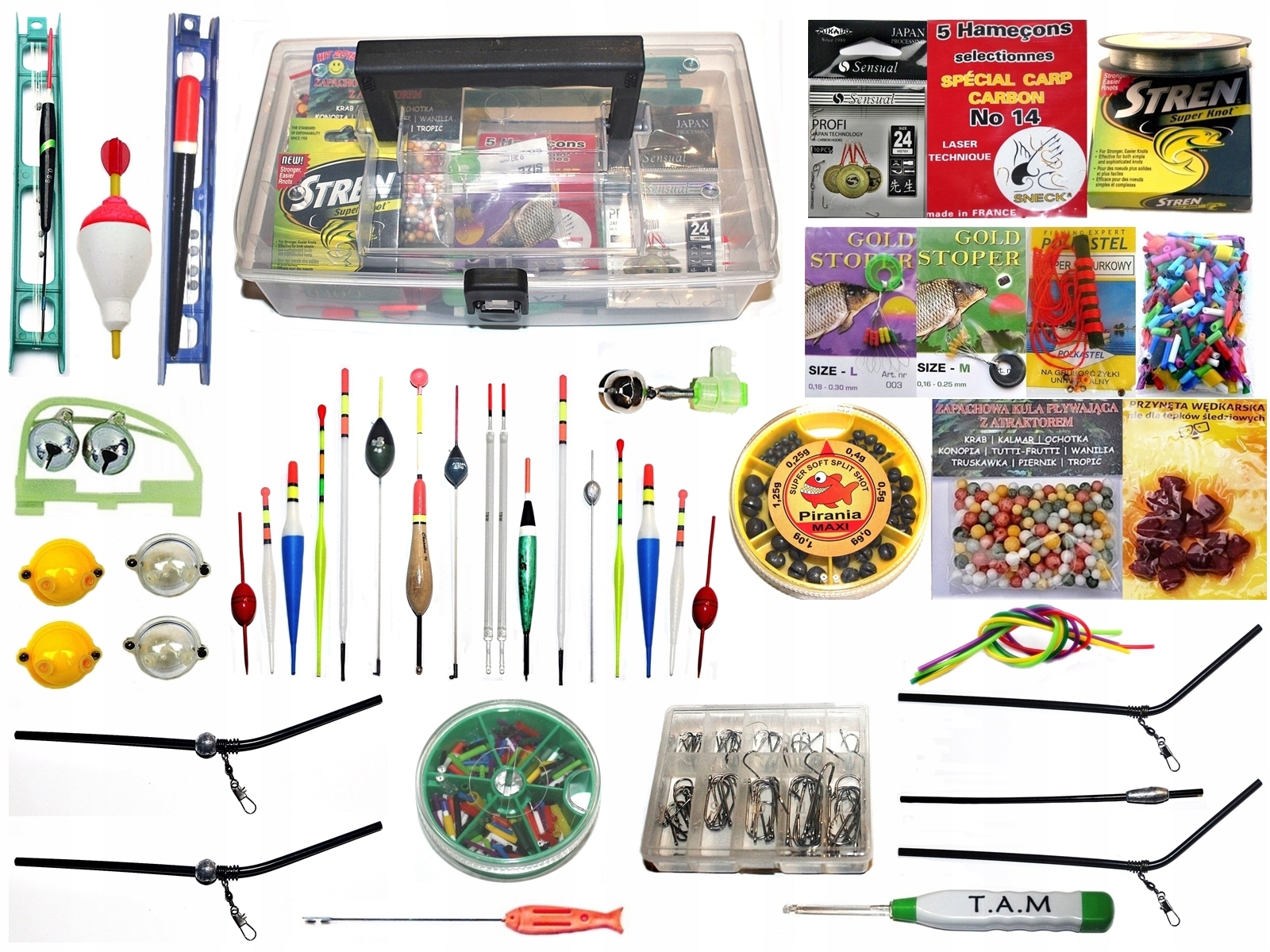 коробка + 797 штук аксесуарів, корисні під час риболовних поїздок. Різні кольори та вага, включаючи: