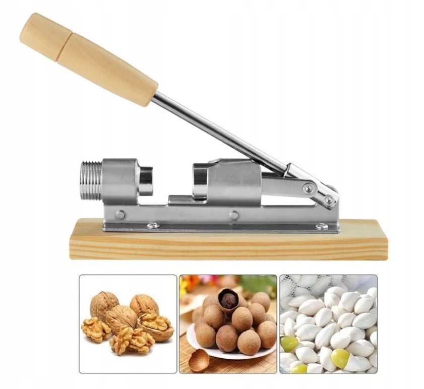 Надійний горіхокол. Наша машина має двосторонній різьбовий конус, який можна використовувати залежно від розміру гайки. Наша машина підходить для дроблення волоських горіхів, оригінсу, фундука, мигдалю та багатьох інших! Не зволікайте та замовляйте сьогодні пристрій, який дозволяє досягти точного розколювання!