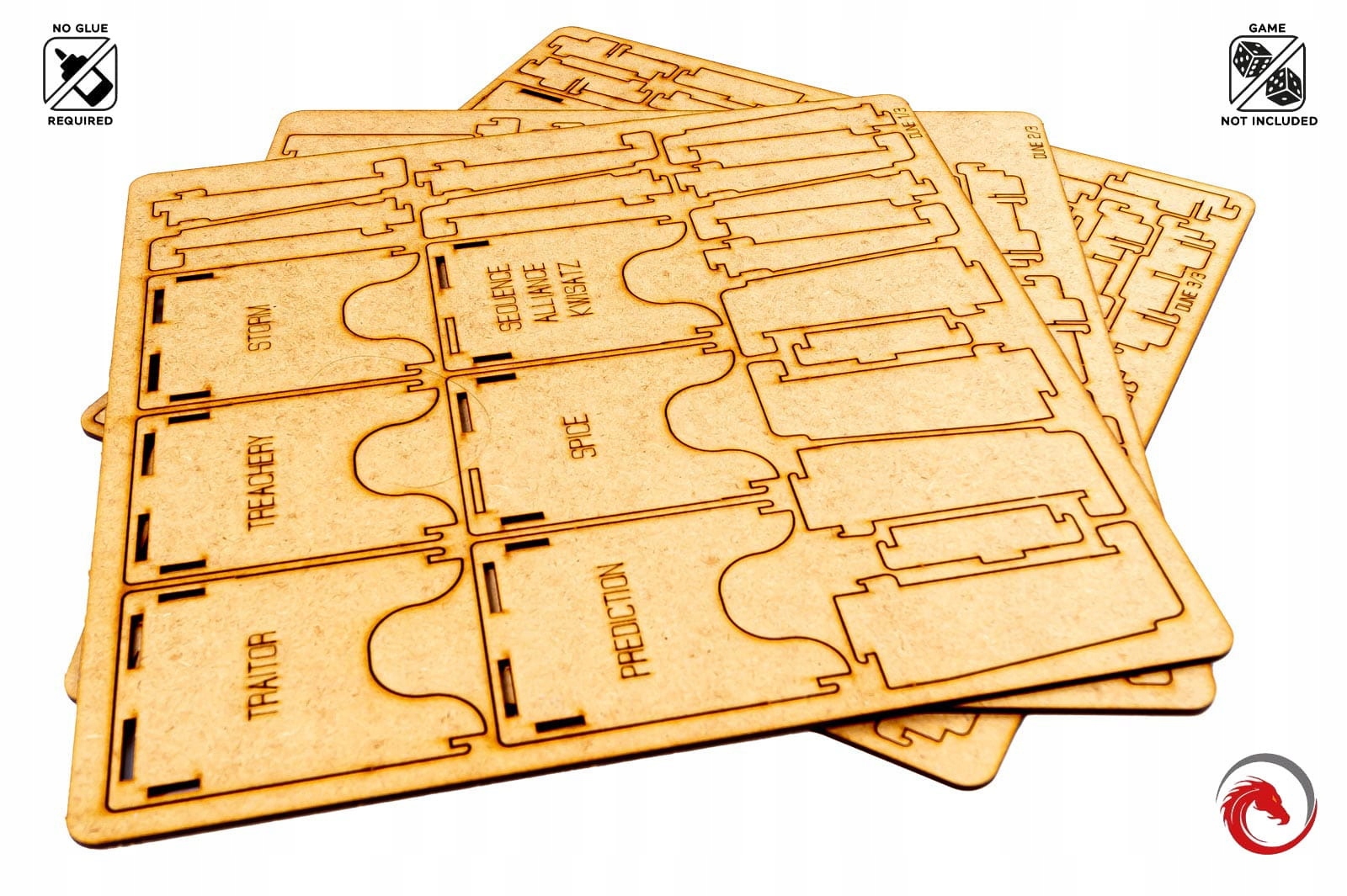 Завдяки вставці, ви можете організувати всі елементи гри (кістки, картки в T -сорочках, теги гравців тощо) і тримати їх в одному місці, не боячись втратити контроль над налаштуванням. Гравці отримують легкий доступ до всіх елементів, які не займають стільки місця, як при граці без вставки.