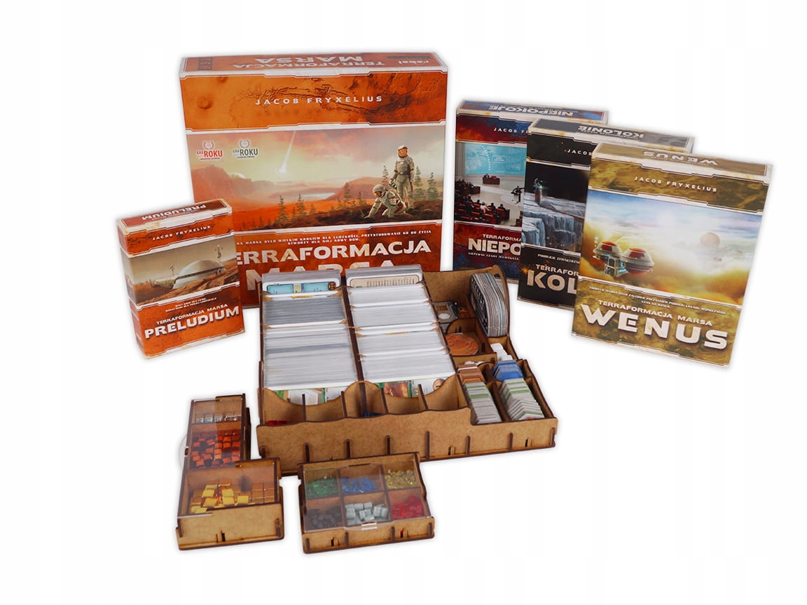 Процес тераформації вимагає вашої повної уваги до перемоги. Ми подбаємо про організацію компонентів, ви організовуєте Марс. Розроблений для вдосконалення враження від гри. Кістки, маркери гравців тощо) і тримають їх в одному місці, не побоюючись втрати контролю над налаштуванням. Гравці отримують легкий доступ до всіх елементів, які не займають стільки місця, як при граці без вставки. Крім того, коли коробка закрита, компоненти все ще тримаються в порядку, готова розпочати гру швидше, ніж будь -коли раніше. Вставка довговічна і виготовлена з високоякісної HDF. Щоб скласти його, не потрібно використовувати клей. Це дозволяє зберігати всі елементи всередині коробки. Пропоноване розташування компонентів, видно на знімках. /p>