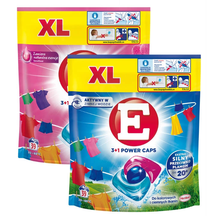 - 3 ДІЇ В 1: E Power Caps поєднує 3 функції в 1 капсулі. Вони забезпечують чистоту, блиск і свіжість білизни для всієї родини.
