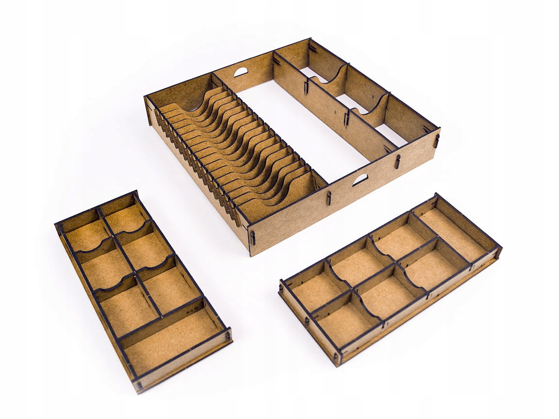 вставка міцна і виготовлена з високоякісного HDF. Для його складання не потрібен клей. Це дозволяє зберегти всі елементи всередині коробки. Пропоновані налаштування компонентів ви можете побачити на фотографіях. Ця пропозиція стосується лише до вставки. Гра не входить.