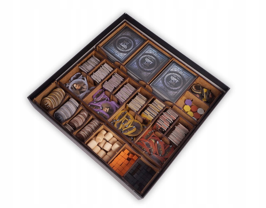 Ви можете зберігати всі свої картки, жетони тощо в одному місці, не боячись втратити контроль над розташуванням. Вони легкодоступні і не займають стільки місця, як під час гри без органайзера. Крім того, коли коробка закрита, компоненти все ще зберігаються впорядкованими, готовими налаштувати вашу наступну гру швидше, ніж будь-коли раніше.