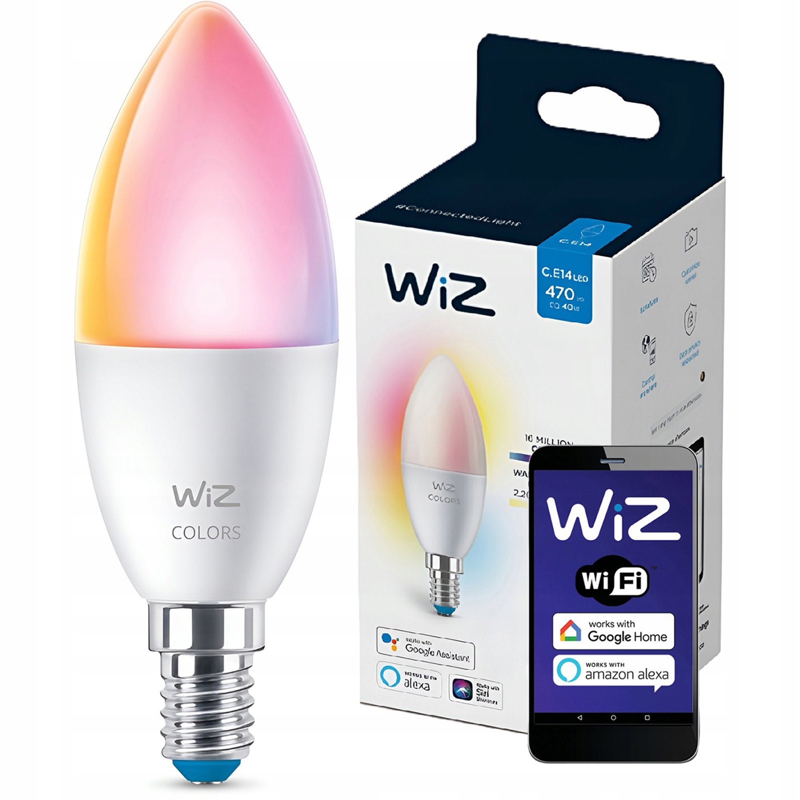 Розумна світлодіодна лампочка від WiZ, керована через мобільну програму WiZ Connected. Світлодіодна лампа характеризується дуже гарною якістю випромінюваного світла, точною передачею кольору (CRI90) і високою світловою ефективністю. Розумна світлодіодна лампочка оснащена енергозберігаючим світлодіодним джерелом світла потужністю 4,9 Вт (еквівалентно традиційній лампочці 40 Вт), світловим потоком 470 лм і завдяки мобільному додатку WiZ Connected ми можемо регулювати колірну температуру лампи в діапазоні від приємного теплого через нейтральний до холодного та багатоколірного (RGB).
