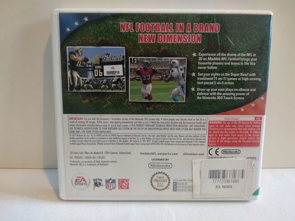 Оплачивая «EA Sports Madden Football Регбі NFL 3DS», вы можете быть уверены, что данный товар из каталога «Спортивные» будет доставлен из Польши и проверен на целостность. В цене товара, указанной на сайте, учтена доставка из Польши. Внимание!!! Товары для Евросоюза, согласно законодательству стран Евросоюза, могут отличаться упаковкой или наполнением.