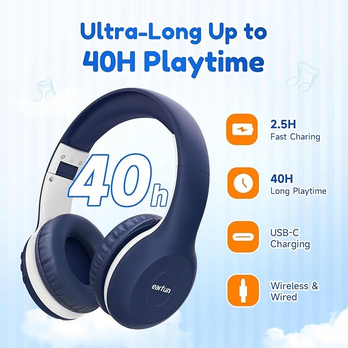 Earfun K2 słuchawki bezprzewodowe nauszne dla dzieci bluetooth mikrofon 40h